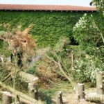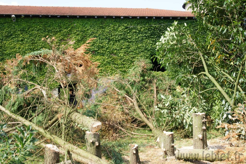 Cette ligne de cyprès, plus jeune que les thuyas précédemment enlevé, une vingtaine d’année environs, nous faisait une ombre terrible en fait, elle nous faisait facilement perdre sur et devant la maison deux petites heures de soleil bienfaiteur. Certains troncs dépassent pour certains les 30cm de diamètres.