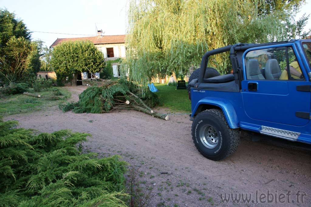 Bon, merci donc à cette belle jeep qui rêve d’une annualisation de la vignette malus ^_^, sans sa puissance tout cela aurait pris des jours entiers et des litres d’essence supplémentaires pour tronçonner les troncs, et à Stéphane encore pour tout ce travail abattu et sa propre puissance… j’en vois qui sourient ! :o)