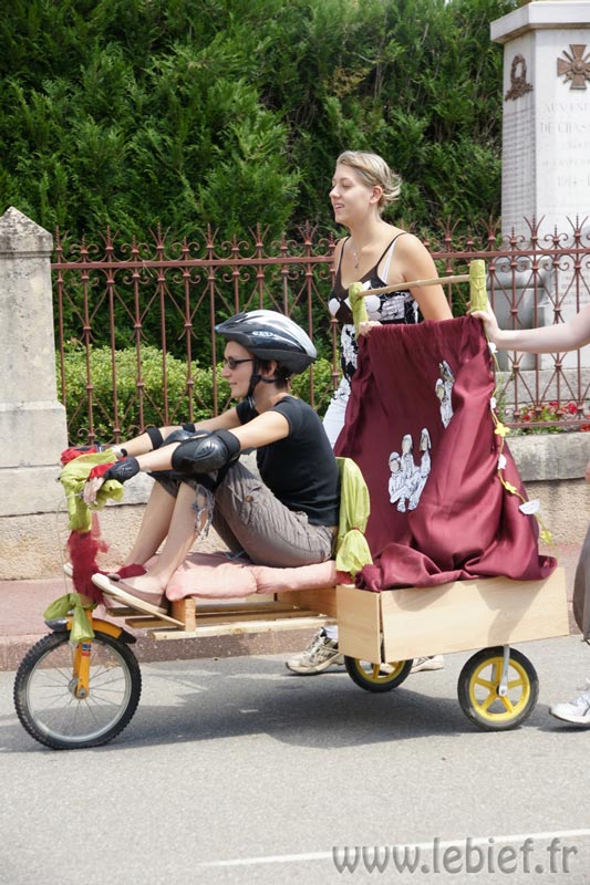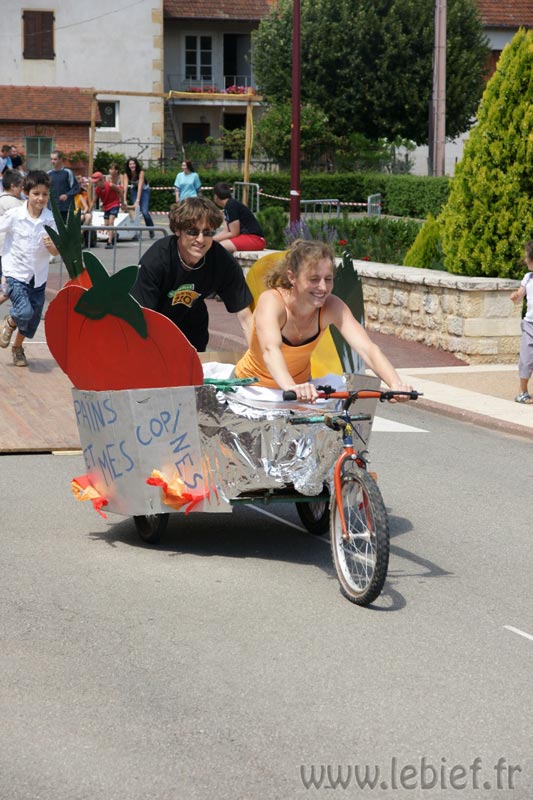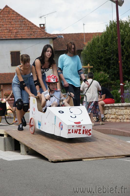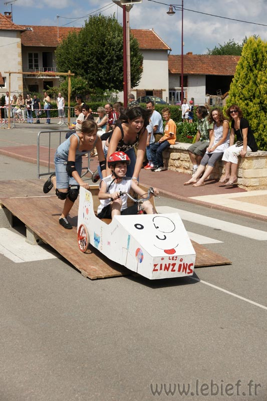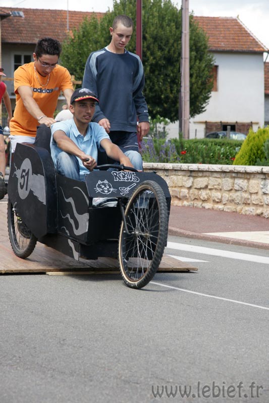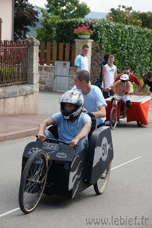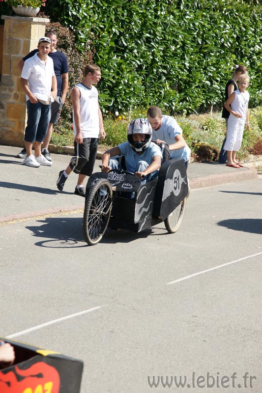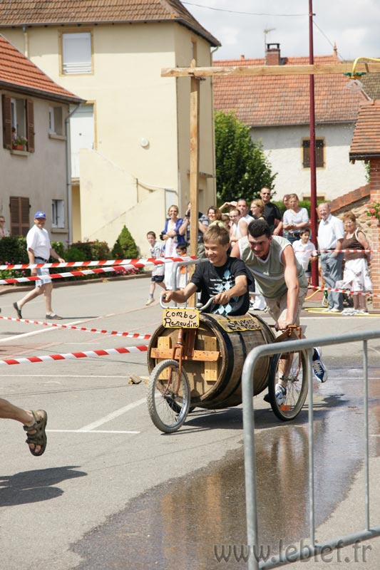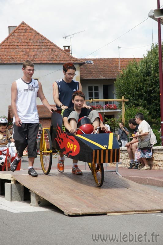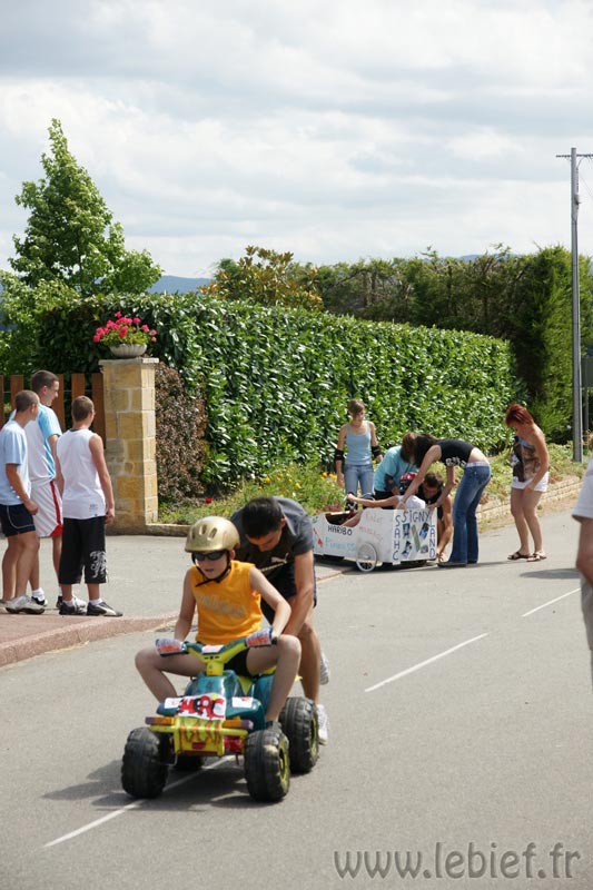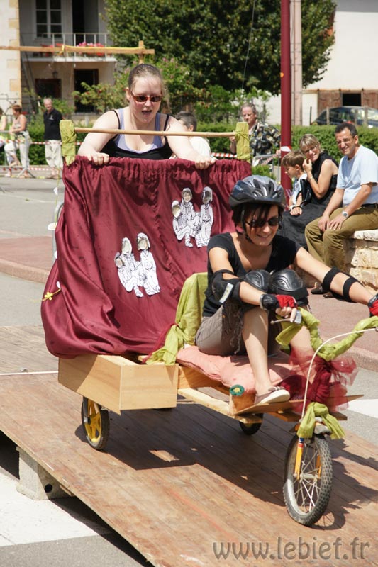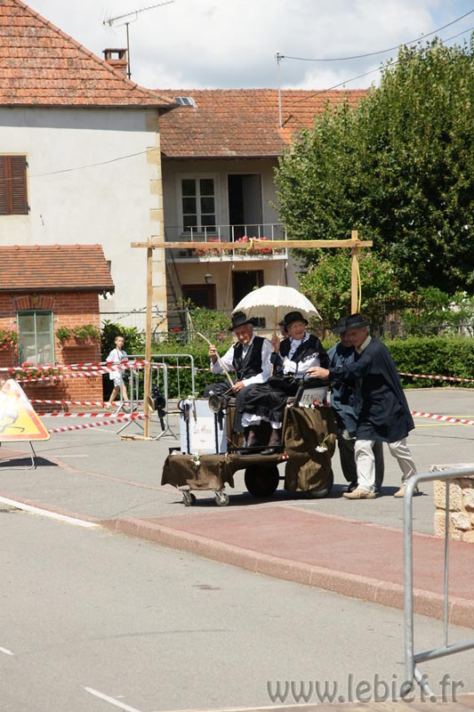 Après le Festicheval le matin, nous étions très impatient d’assister à la course de l’après-midi. La rue principale de Chassigny était carrément bouchée pour l’occasion, la municipalité ne fait pas les choses à moitié :o), et servait de circuit aux engins fabriqués maison par des habitants motivés de Chassigny sous Dun.