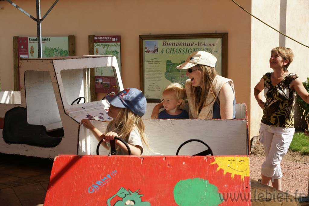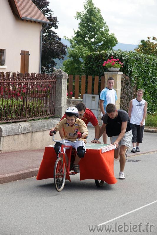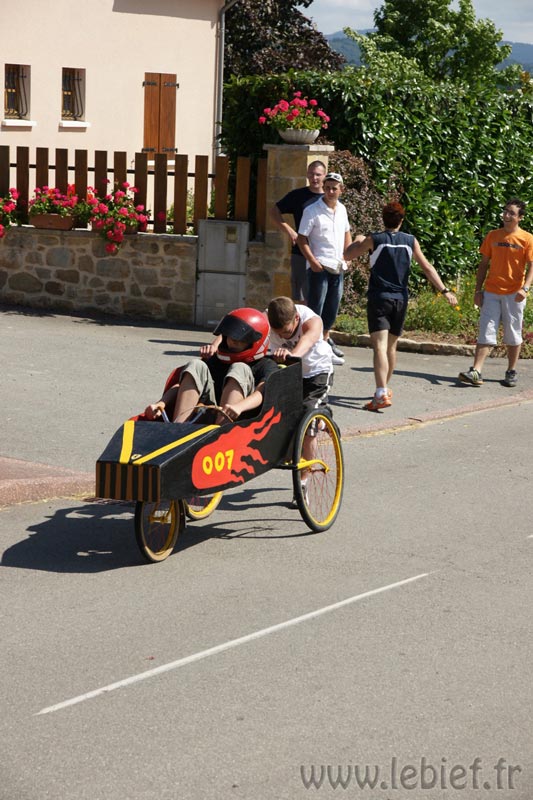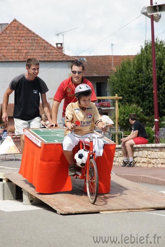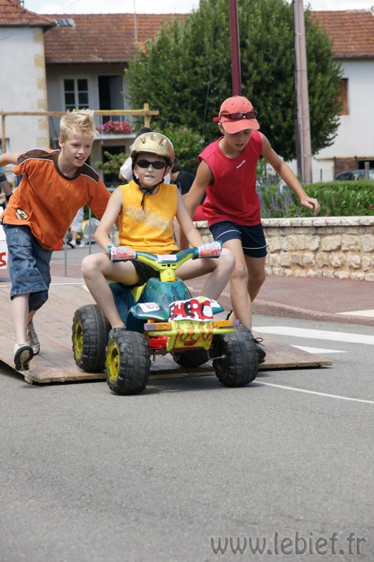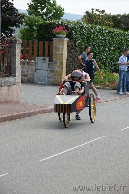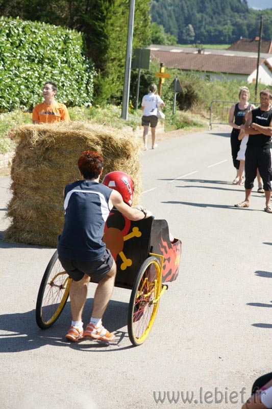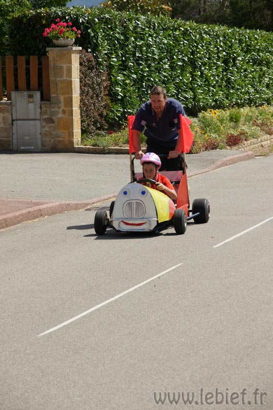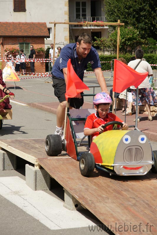 Je laisse le soin aux photos de mieux décrire que moi les diverses fabrications maisons de ces bolides de course, mais on a vu un peu de tout… L’ambiance, très bonne enfant, était au rendez-vous. En parallèle de la course se trouvait un manège, dont tout les sous étaient reversées à l’association Les rêves d’Audrey… Inutile de préciser que Virgile n’avait pas besoin de savoir cela pour en profiter plus d’une fois :o) Mais on a trouvé que c’était un très bonne idée de parrainer ainsi les recettes du manège. En fait, toutes les recettes de la journée (repas, manèges, …) sont reversées à l’association.