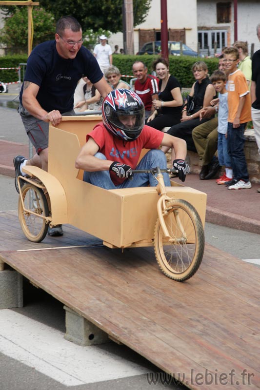 Virgile aimerait beaucoup y participer cette année et j’ai pour mission de fabriquer un véhicule qui permette un départ « champignon ». Bref, il faut que je m’y attelle mais avec tous ces chantiers en cours, j’ai bien du mal à même rassembler les pièces pour monter un tel bolide. Sans compter qu’il faut un temps fou pour en construire un j’imagine. Bon, le but est bien entendu d’arriver premier pour Virgile, alors j’ai pas droit à la faute. Mais comment et où trouver les pièces pour ça ? roues, essieu, chassis, direction, … Je ne manque pas d’inspiration avec les photos de cet article, mais n’ayant même pas de fer à souder, c’est pas le top…Alors je lance un appel aux lecteurs proches kilométriquement, si quelqun a des pièces qui me permettraient de fabriquer un ORNI, je suis plus que preneur, en échange, la personne aura le droit de venir travailler sur nos chantiers quand elle voudra :o)