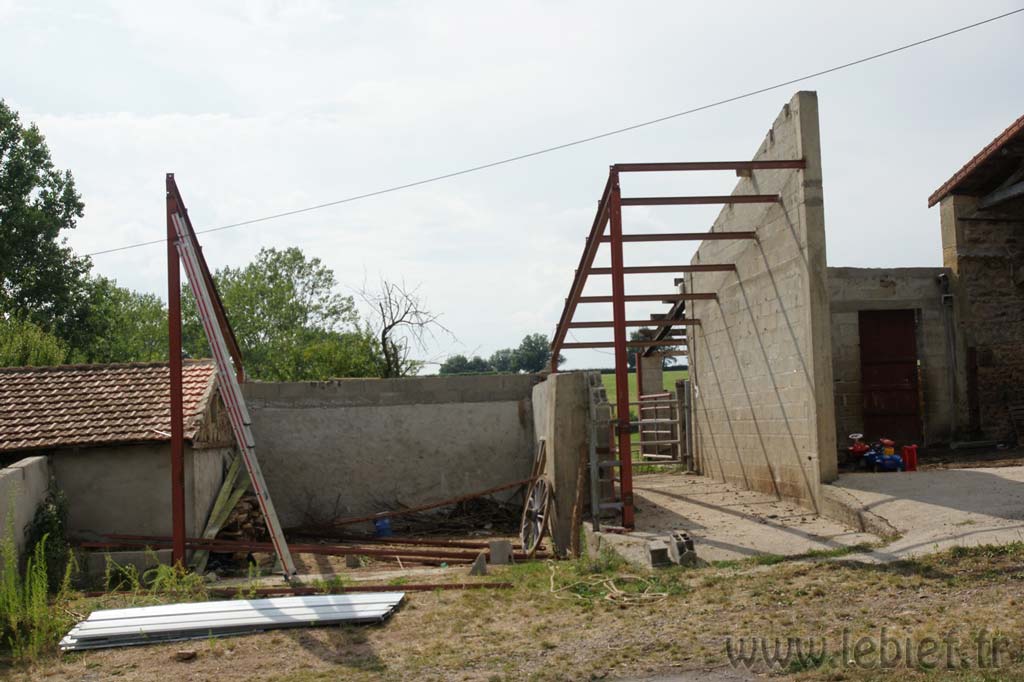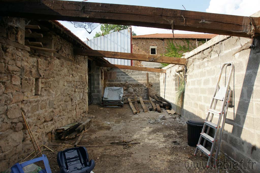 On m’avait conseillé de faire venir une machine pour démonter ces bâtiments, histoire d’aller plus vite et de ne pas se briser le dos, ou le cou :o), mais à vrai dire, bien que tentante, cette solution ne nous sied guère.