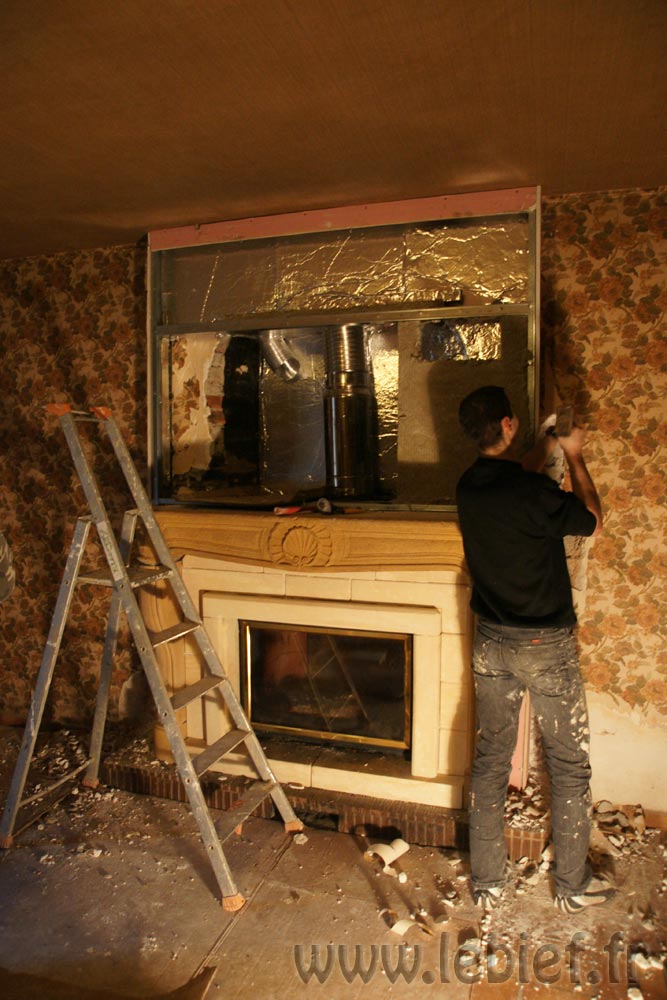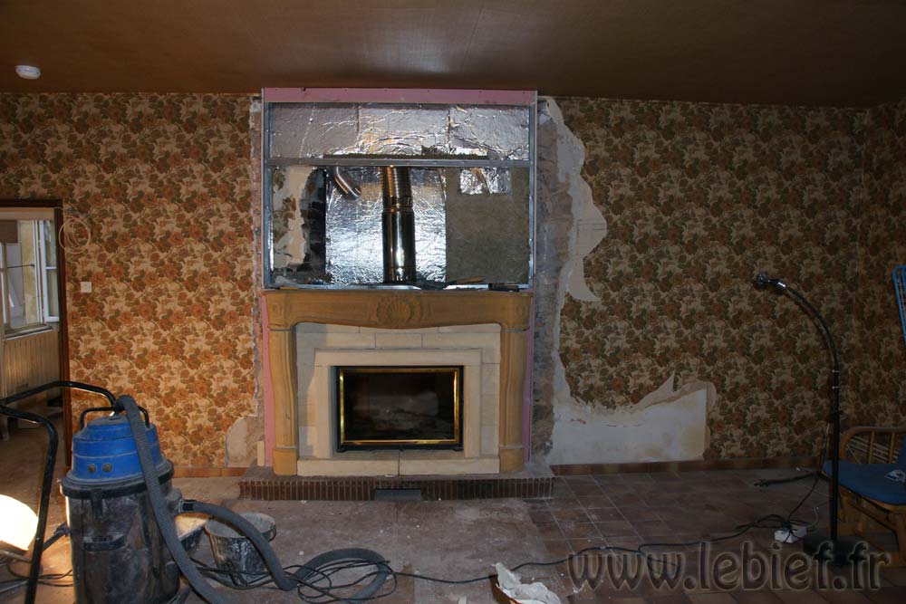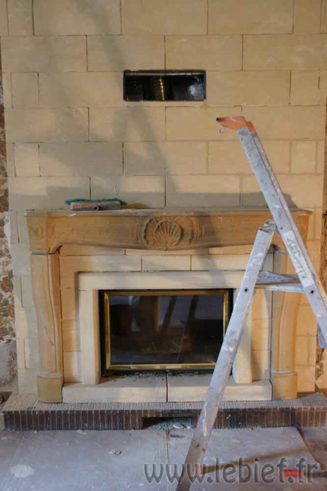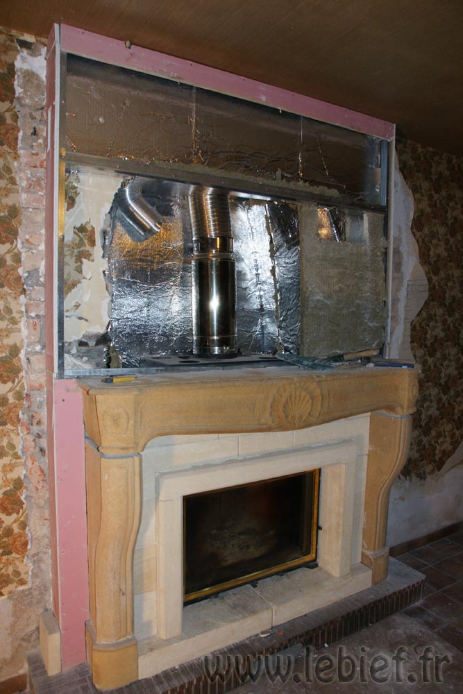 Alors, que restait-il à faire ? L’insert Godin 851HR est installé, les conduits aussi, il restait donc la maçonnerie tout autour.
