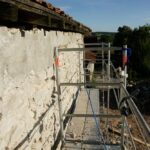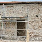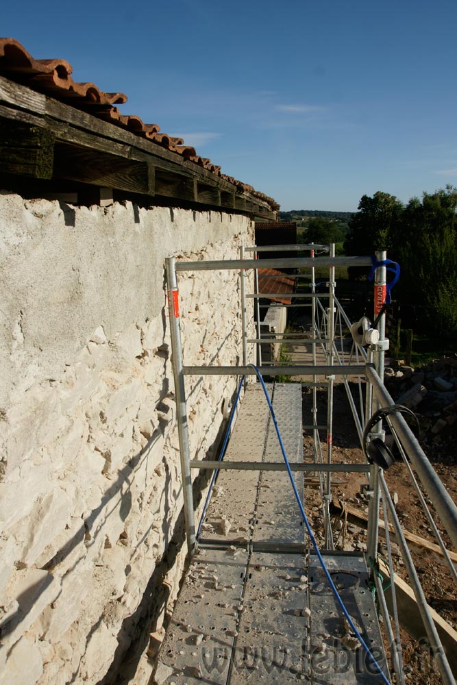 Compresseur, marteaux burineurs, et surtout, passé les 1m et quelques, il me fallait trouver un échafaudage. Et ça non plus ce ne fut pas une simple affaire. Finalement, la solution à ce dernier problème est venu de tout près d’ici, merci Matthieu de m’avoir prêté le tien avant ton chantier !!!!!!!