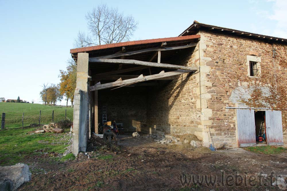 Ils ne faisaient pas que nous gacher la vue de leurs grises mines et de leur amiante fibrodélurée, mais ces bâtiments, devenus aujourd’hui inutiles vu qu’on ne compte pas reprendre une activité de négociant en bovidés, activité pratiqué par l’ancien propriétaire, nous la bouchait carrément ! Depuis que nous avions enlevé la rangée de cyprès nous ne voyions qu’eux. Fini tout cela aujourd’hui, un bon désamiantage, quelques parpaings en moins, quelques montées à l’échafaud et voilà le résultat :
