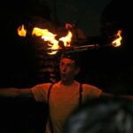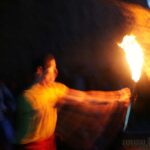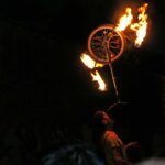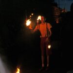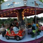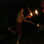 Après une entrecôte servie chaude dans des assiettes en plastique (et donc arrivée froide à table :o/ ) accompagnée de frites (chaudes celles-ci), une petite promenade sur les quais en attendant la nuit, quelques tours du petit manège dressé pour l’occasion (si si, quand je dis petit, ce n’est pas au figuré :o) ), nous avons assisté à un spectacle d’un clown jongleur qui n’avait pas froid au yeux, ni ailleurs en fait. Après ce très impressionnant intermède a enfin démarré un beau feu.