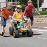 Virgile aimerait beaucoup y participer cette année et j’ai pour mission de fabriquer un véhicule qui permette un départ « champignon ». Bref, il faut que je m’y attelle mais avec tous ces chantiers en cours, j’ai bien du mal à même rassembler les pièces pour monter un tel bolide. Sans compter qu’il faut un temps fou pour en construire un j’imagine. Bon, le but est bien entendu d’arriver premier pour Virgile, alors j’ai pas droit à la faute. Mais comment et où trouver les pièces pour ça ? roues, essieu, chassis, direction, … Je ne manque pas d’inspiration avec les photos de cet article, mais n’ayant même pas de fer à souder, c’est pas le top…Alors je lance un appel aux lecteurs proches kilométriquement, si quelqun a des pièces qui me permettraient de fabriquer un ORNI, je suis plus que preneur, en échange, la personne aura le droit de venir travailler sur nos chantiers quand elle voudra :o)