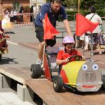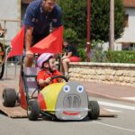 Je laisse le soin aux photos de mieux décrire que moi les diverses fabrications maisons de ces bolides de course, mais on a vu un peu de tout… L’ambiance, très bonne enfant, était au rendez-vous. En parallèle de la course se trouvait un manège, dont tout les sous étaient reversées à l’association Les rêves d’Audrey… Inutile de préciser que Virgile n’avait pas besoin de savoir cela pour en profiter plus d’une fois :o) Mais on a trouvé que c’était un très bonne idée de parrainer ainsi les recettes du manège. En fait, toutes les recettes de la journée (repas, manèges, …) sont reversées à l’association.