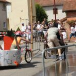 Après le Festicheval le matin, nous étions très impatient d’assister à la course de l’après-midi. La rue principale de Chassigny était carrément bouchée pour l’occasion, la municipalité ne fait pas les choses à moitié :o), et servait de circuit aux engins fabriqués maison par des habitants motivés de Chassigny sous Dun.