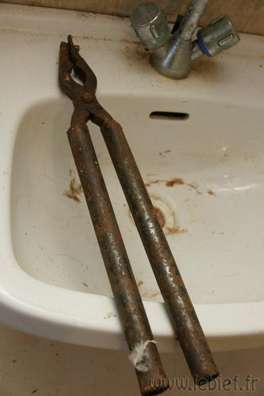 Dans cette pièce, j’ai trouvé du matériel directement importé de Serbie pour faire du piercing aux vaches (je présume) et de quoi se toiletter après son office… Si les murs ont des oreilles, j’espère qu’il ont aussi des paupières, pour les fermer :o/