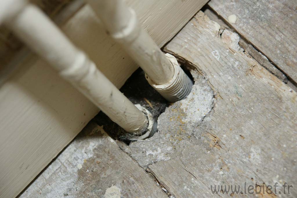 Retour à la maison, et séquence arrachage de moquette dans une pièce du 1er, histoire de bricoler un truc pour la maison quand même et de voir l’état du plancher en dessous. Il y aura donc des planches à changer visiblement, on notera le grignotage de souris et leur passage bien au chaud, et à propos de chaud, ne collez pas les moquettes sur les tuyaux de chauffage (cf photos).