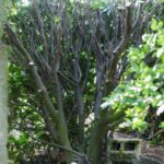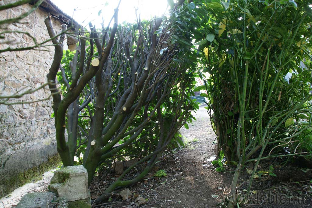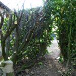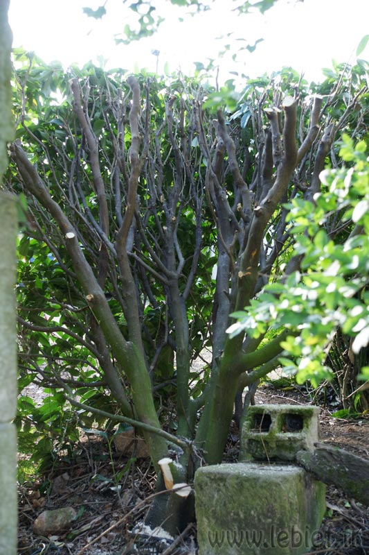 – Dans ma rage d’élagage, on s’est lancé avec Virgile dans celui du laurier en face de l’entrée de la propriété. C’était plus simple que les thuyas, et plus court surtout, quelques heures seulement… Notons le petit passage que s’est fait Virgile pour lui et Darius :o) . Notons aussi la belle et fine façade verte devant, et le coeur du laurier qui n’avait plus vu le soleil depuis longtemps.
