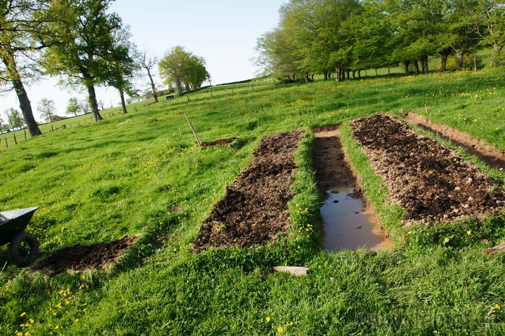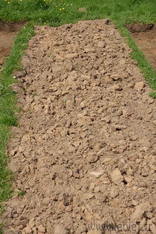 Elles n’aiment pas trop se frotter l’abdomen sur ces machins pointus. J’ai posé quelques petits morceaux de planches (50 cm environs) près des cultures. Elles aiment se réfugier en dessous, il n’y a plus qu’à les cueillir. Un peu de cendre par ci par là, mais pas trop, nous ne voulons pas dénaturer la qualité du sol. Nous allons perfectionner ces différents systèmes. Et je pense aussi faire de la bouillie diluée de limace (c’est un peu dégueu et pas bon du tout pour mon karma) mais il paraît que c’est assez efficace en pulvérisation sur les cultures. A voir. A terme, nous devrions pouvoir attirer quelques prédateurs de limaces, mais pour l’instant, nous partons d’un terrain nu.