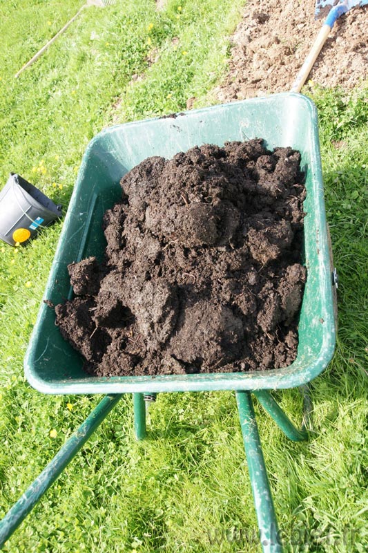 – Nous faisons la chasse à la limace et prévenons un peu leurs visites (elles adorent les petits plants de petits pois, et d’autres aussi :o( ) avec des coquilles d’oeufs écrasées. Nous y ajouterons des coquilles d’escargots demain, on en a trouvé avec Vigile tout un stock derrière les thuyas désouchés.