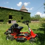 Auparavant les heureux possesseurs d’une tondeuse Viking électrique (sur batterie), nous en étions fort satisfaits, sur notre jardin de 2 ares à Strasbourg. Ici, la donne est différente, 1500 2500-3000 m2 d’herbe à couper, et ce n’est pas un petit gazon. Jusqu’ici, tondre me prenait en gros 3 jours. Tondre une longueur, vider le bac, une autre longueur, vider le bac, etc… jusqu’à la recharge nécessaire de la batterie, etc… De plus, il fallait donc 3 jours de temps sans pluie, ce qui n’est pas toujours simple selon la saison. :o)