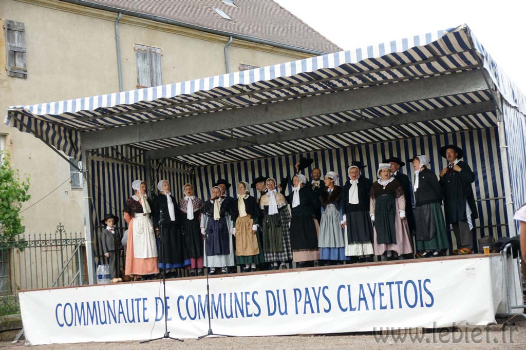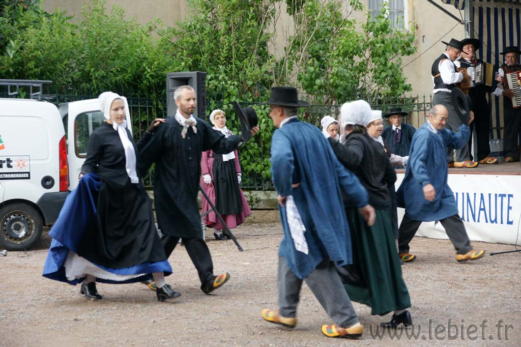 Un petit article qui résume vite fait le spectacle auquel nous avons assisté aujourd’hui à Saint-Laurent en Brionnais. Ca nous change des coiffes alsaciennes, et nous a fait découvrir un patrimoine local vraiment impressionnant. Les costumes sont, je trouve, très jolis et même si ça ne se voit pas en photo, la danse avec les sabots était très travaillée, vive, et ma foi, la musique était plutôt sympa.