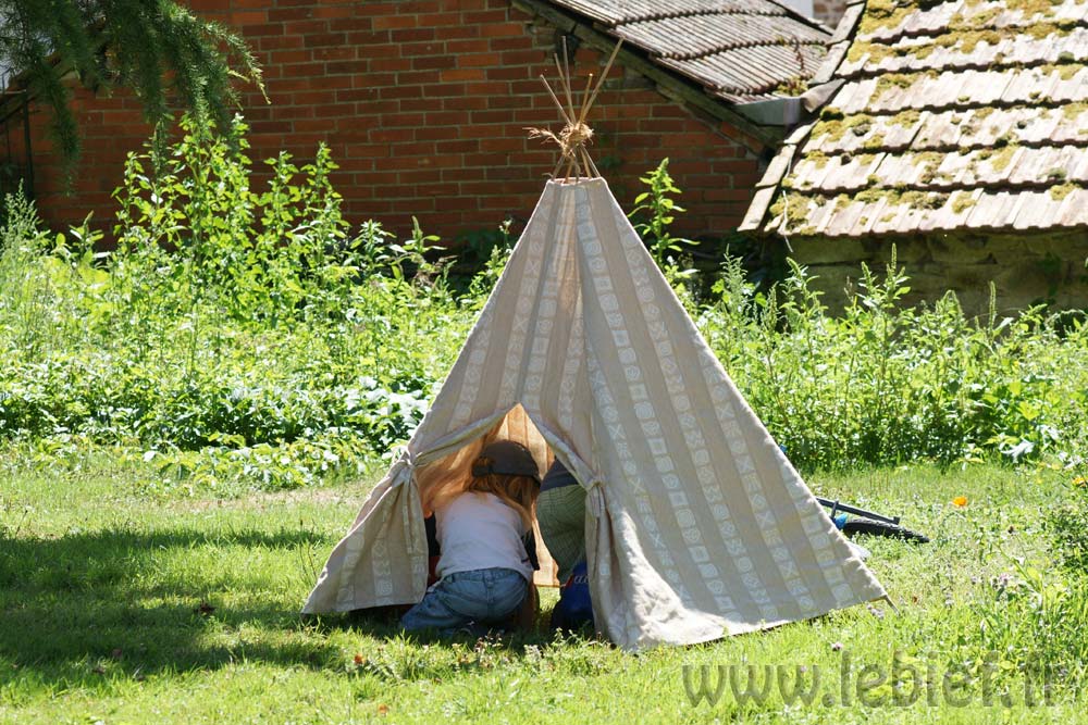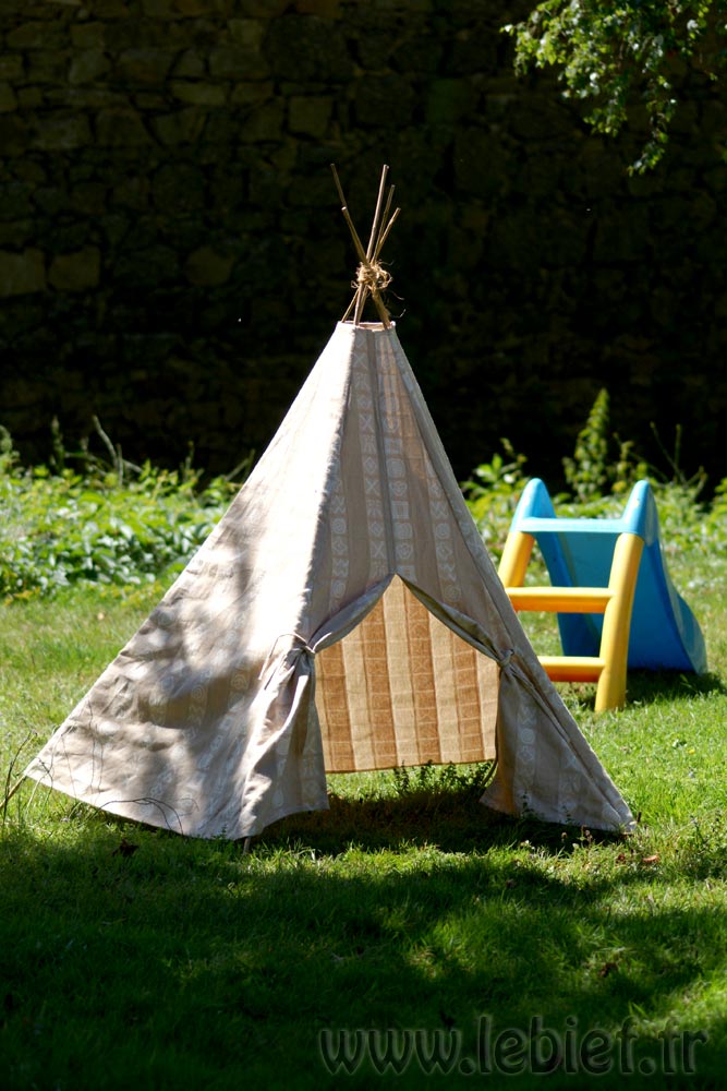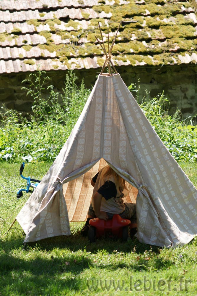 Bon, du coup j’en profite pour mettre une photo aussi du joli tipi que j’ai fait pour les enfants en tissu bio (vous pouvez acheter le kit ici http://www.nearseanaturals.com/item.php?id=2099 )