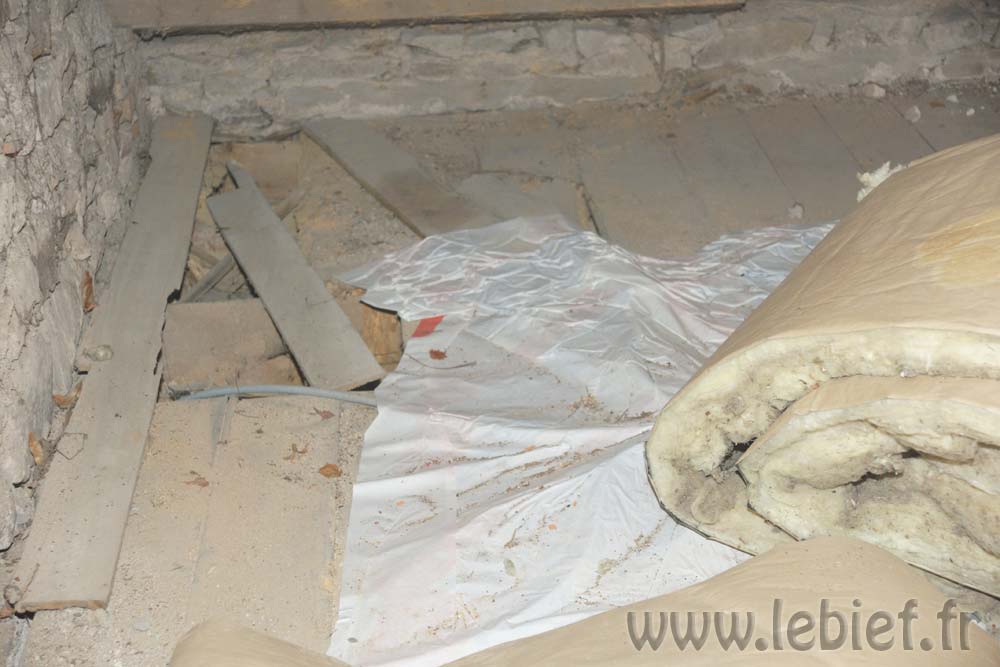 Pour ceux qui hésitent avec ce matériau, vous pouvez mettre moins de ouate, cela fait aussi réduire le devis. Nous avons opté pour une surisolation de ces combles car nous savons aussi comment cette maison est conçue, et ce que nous avons trouvé sous la laine de verre m’a conforté dans nos choix.