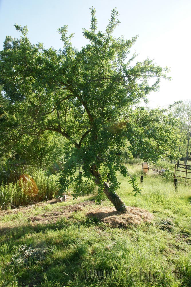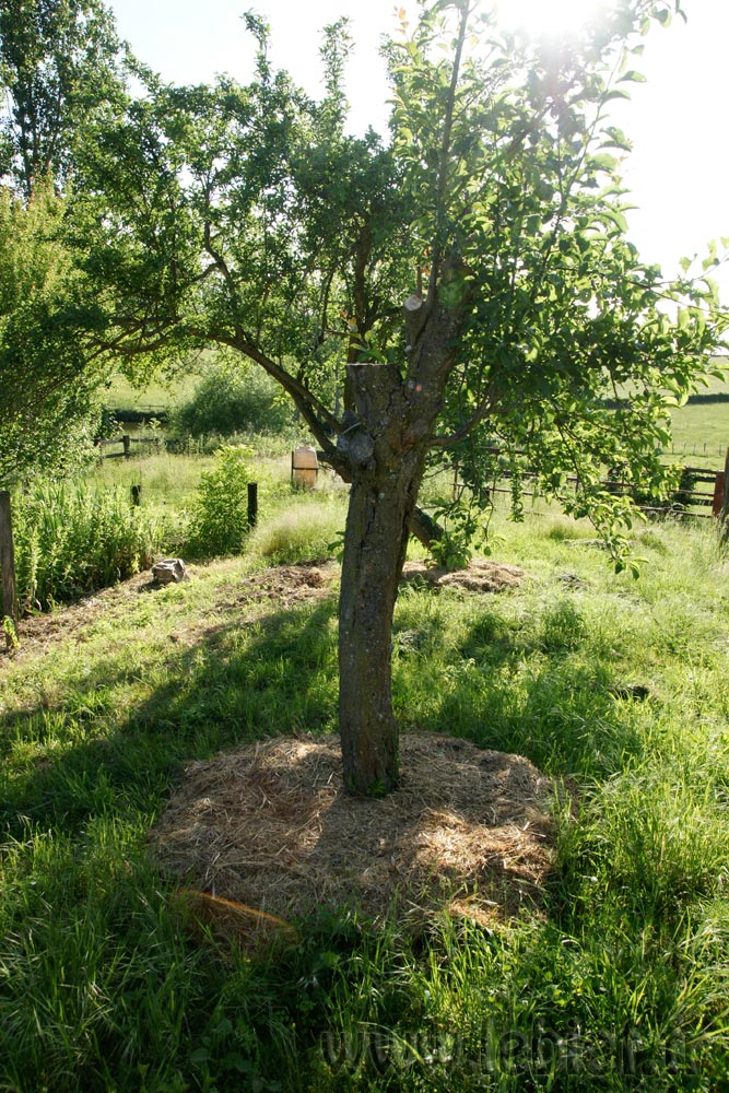 L’air de rien, ils finissaient par l’embêter ce pauvre fruitier. En effet, ils étaient tous plantés juste en dessous, et commençaient à prendre le dessus… et pis en plus, j’aime pas trop les lauriers, ça a tendance à devoir être taillé un peu souvent, au moins une fois par an :o)