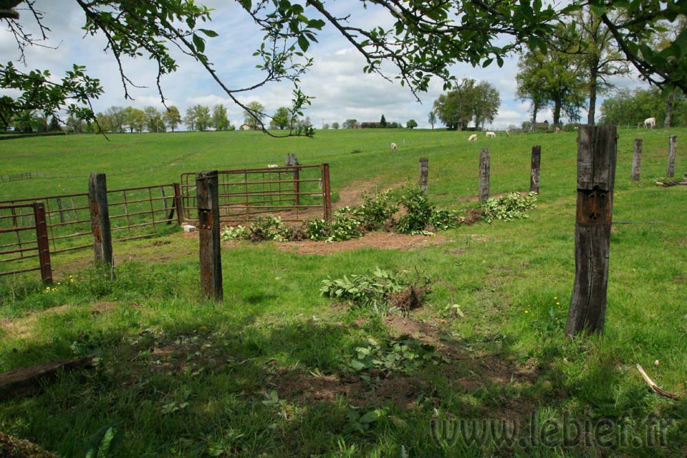 D’ailleurs, pour toutes ces petites choses, et les innombrables autres non citées ici (récupération de pierres sur le terrain, rebouchage de trous sur certaines partie du terrain, nettoyage de chardons dans un champ, débroussaillage, construction d’un château en terre/pierre pour les enfants, dégagement des ouvertures des stabulations (bouchées par cette scrongneugneu de vigne vierge), remplacement de tuiles, fabrication de mousticaires, rangement des stabulations, paillage, réparations diverses…), à chaque fois, ce sont des demi jounées entières qui y passent. Même pour les petites choses faciles. Combien de morceaux de ficelles qui dépassaient un peu de terre ai-je tiré pour m’apercevoir qu’il y en avait 12m enfouis sous terre. Chaque petit truc prend un temps fou, et les journées sont toujours trop courtes. Mais comportent néanmoins une variété dans les travaux qui est très appréciable.