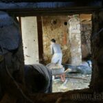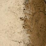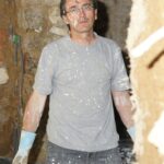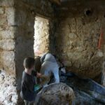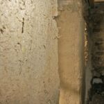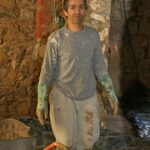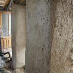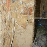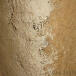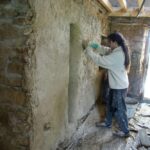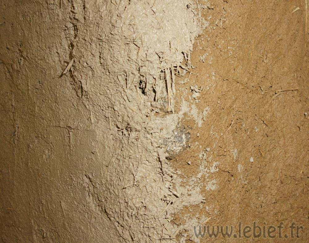 Après examen des essais à différentes concentration de terre / sable / chaux qu’avait réalisé Dimitri auparavant sur une portion de mur, nous avons choisi le mélange le plus adapté.