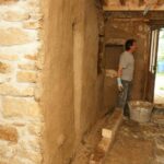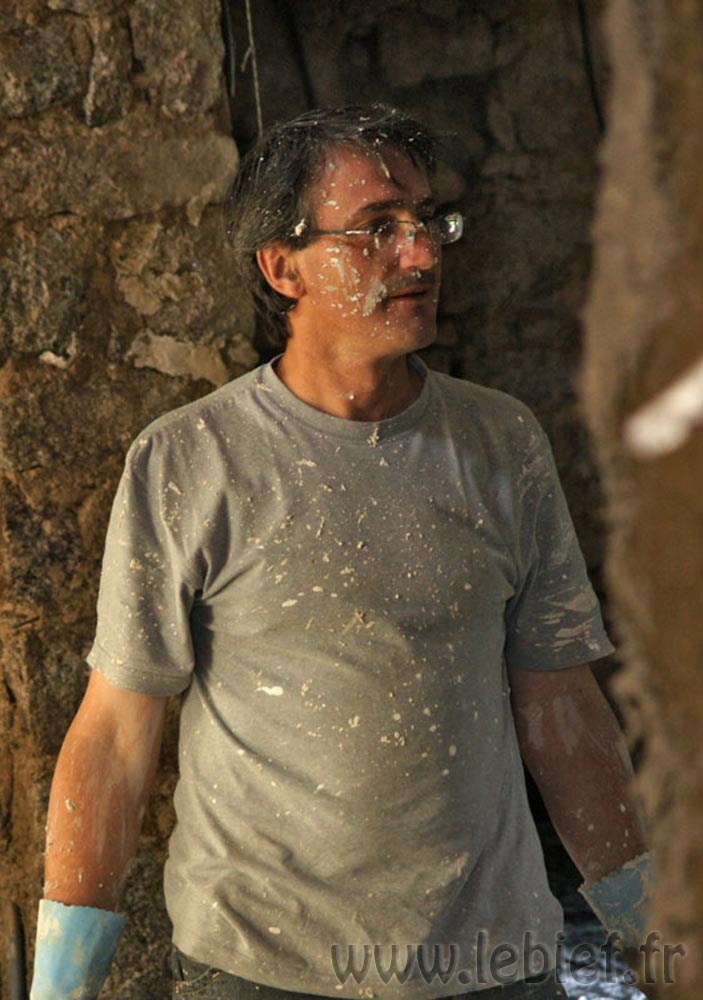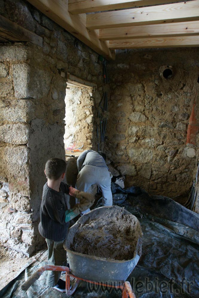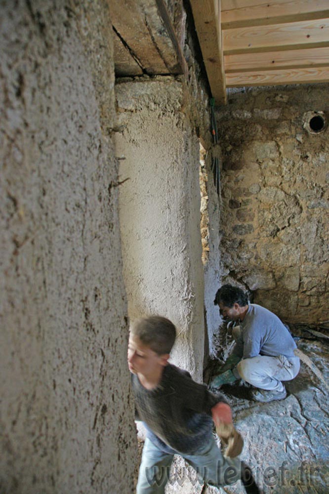 Evidement, je ne pouvais pas laisser passer cela, surtout que les enduits terre risquent plus que fort de nous intérresser tantôt. Je suis le blog de Thierry, Et pisé beau, depuis longtemps, et c’est donc en totale confiance que je suis allé participer à ce chantier d’un jour. C’est aussi sur son blog que j’ai pris conscience de l’importance d’un tel chantier de restauration, et je tremble rien qu’à l’idée des années qui nous attendent :o)