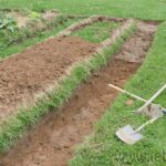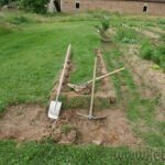 Voilà le principe, avec la bêche je crée un chemin en découpant des parallélépipèdes qui me servent à composer les bordures de ma butte. Une fois tout le pourtour de la butte créé, je prends l’outil numéro deux, ma fidèle pioche de cantonnier grand modèle et je termine le chemin (en effet, les parallélépipèdes de terre d’un seul chemin me permettraient de faire au moins une butte et demi) et je mets toutes les mottes de surface (comprenant surtout un réseau racinaire dense d’herbes) dans le fond de ma future butte. Une fois le chemin créé, toujours avec la pioche de cantonnier, je creuse le chemin et avec une pelle, je prends cette terre et rempli ma butte. En général, selon la hauteur de butte désirée, la terre prise dans le chemin suffit à la créer. Ne reste ensuite qu’à pailler le tout et attendre que les vers de terre et l’eau de pluie fasse leur boulot pour tasser tout ça. Et voilà !