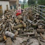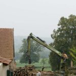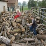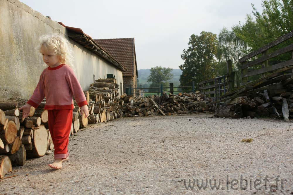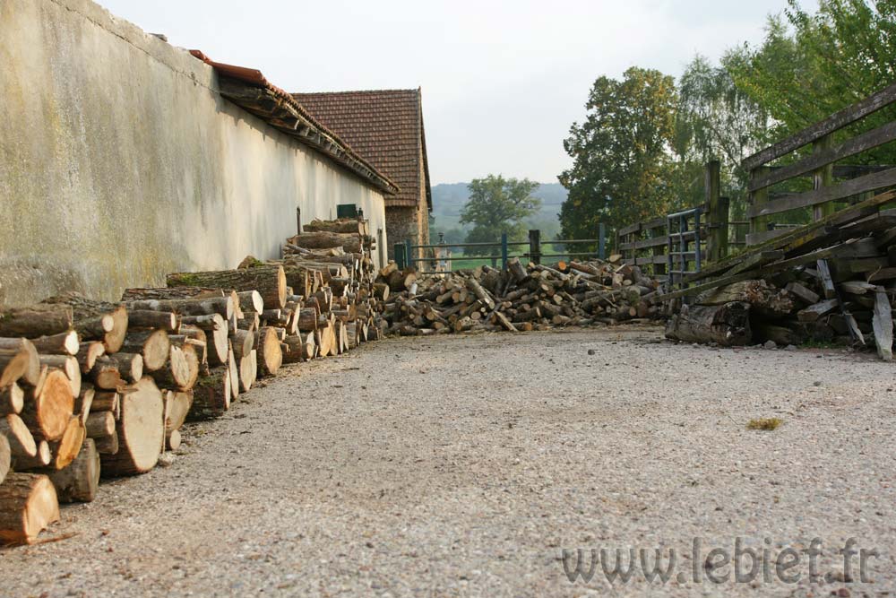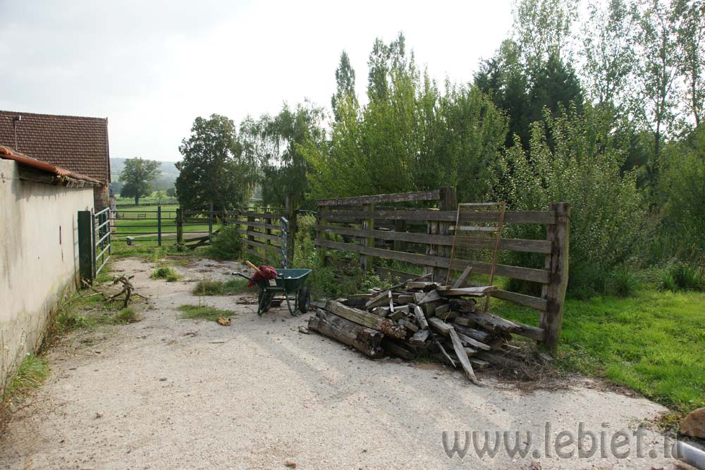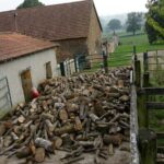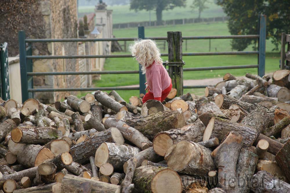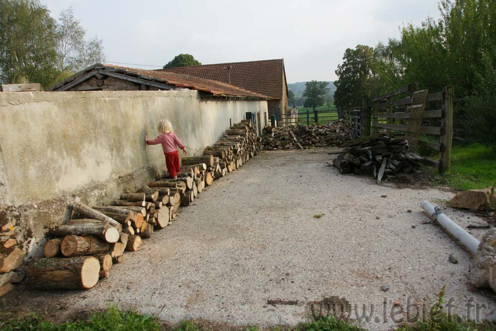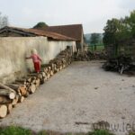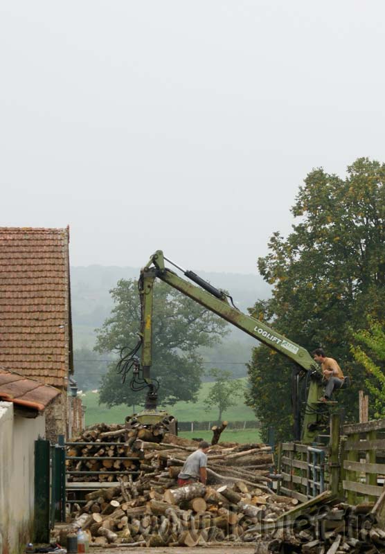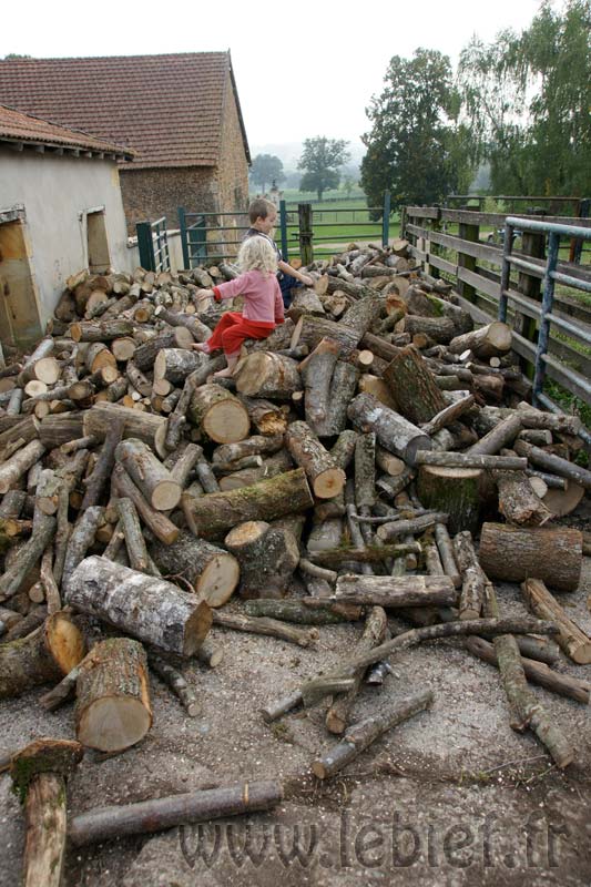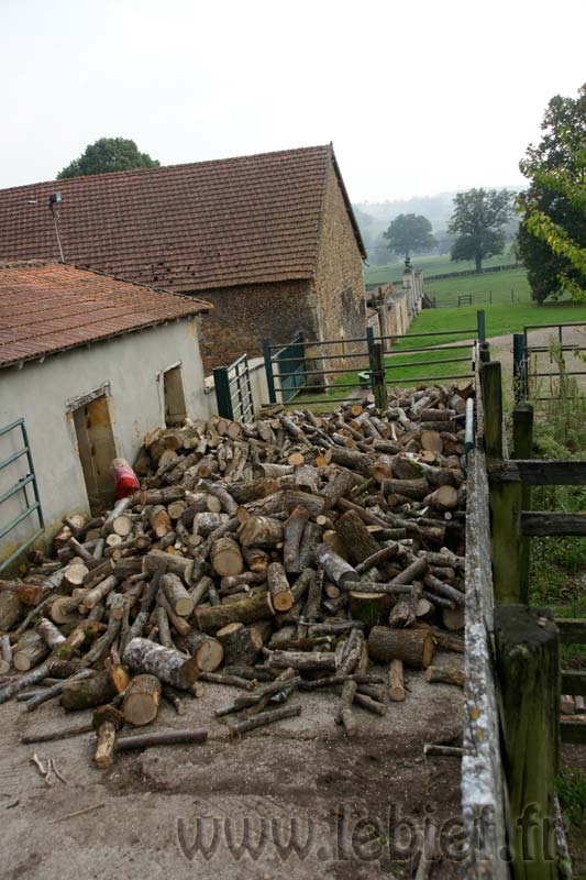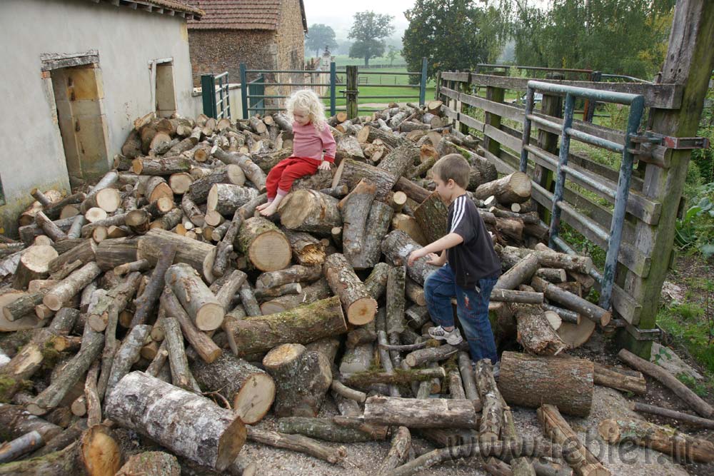 Livraison de morceaux de 2m découpés sur place. Efficace et rapide. moins d’une demi journée pour débarquer & couper les rondins. Le rangement a été pris en main par Roxane et les enfants, le format des bûches le permet et tout le monde est content de ce nouvel exercice. Ceci me laisse tout loisir de poursuivre mes activités du moment (travaux extérieurs à divers endroits de la proprieté). Rien de bien sexy, juste de la récupération de matériaux et autres facéties éconologiques… Bon, quand on sait que ces matériaux sont des poutres en bois, des pierres et rochers, le tout réparti sur les 2 hectares de terrain, ça occupe déjà pas mal, sans parler des déchets car visiblement, quel que soit l’endroit où je pioche, je trouve toujours des bouts de ferraille, des outils enfouis, du plastoc, du verre, bien entendu des barbelés rouillés et de la ficelle de foin.