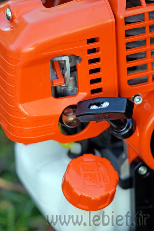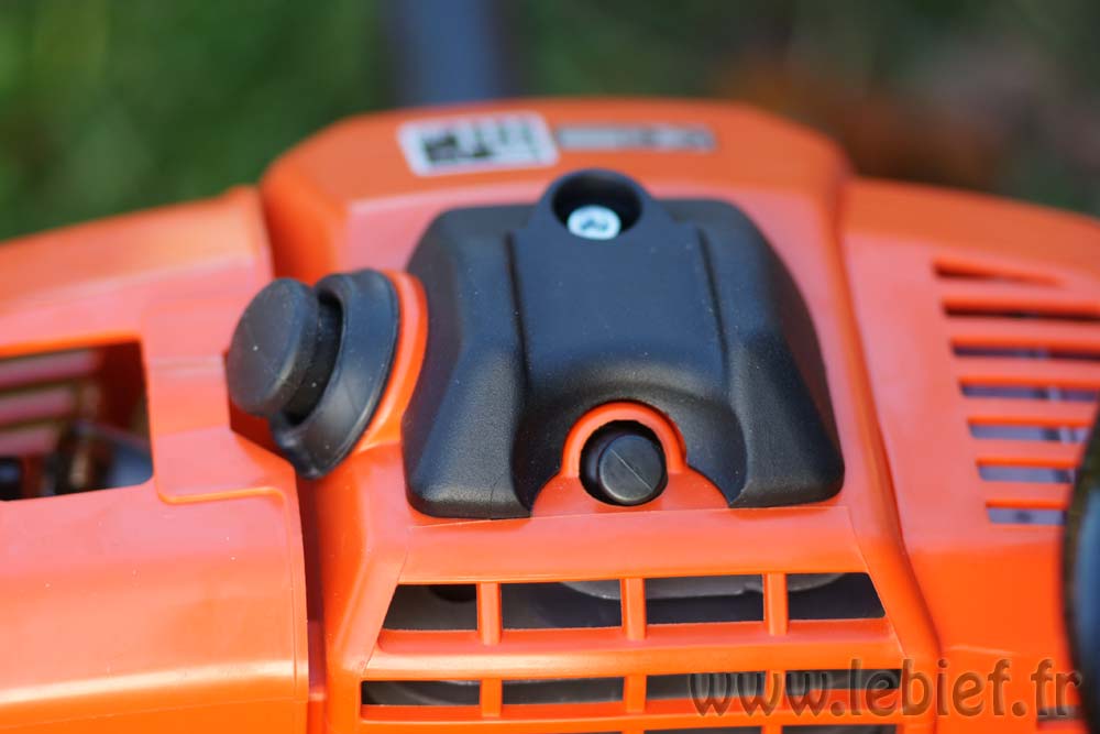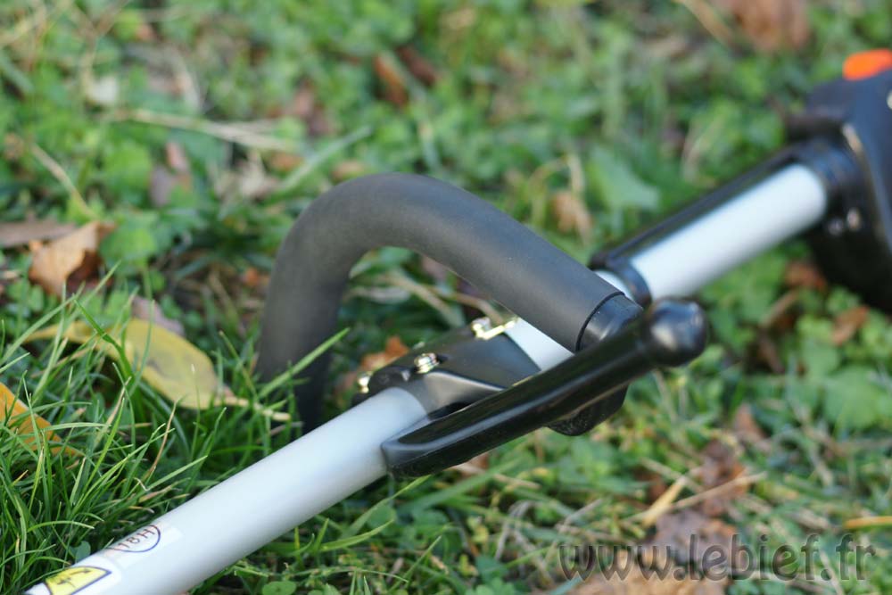 DSC00617Ne l’ayant pas encore utilisé beaucoup d’heures, et pour cause, je ne vais ici que pouvoir au moins en donner mes premières impressions. Elles sont mitigées, vous comprendrez pourquoi, mais techniquement, la débroussailleuse n’y est pour rien, ou presque… ^_^