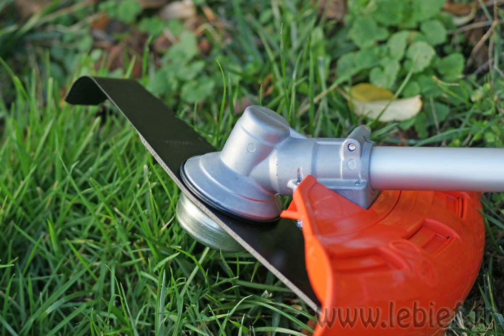 A la place de la lame broyeur, qui est de tout de même limité à un usage spécifique, je compte utiliser cet accessoire de chez Red Mountain (Lames pour débroussailleuses RM04-40254 & RM04-40200) , il m’évite le fil plastique, et semble plutôt performant. Arriverais-je à me couper le pied avec ? ^_^
