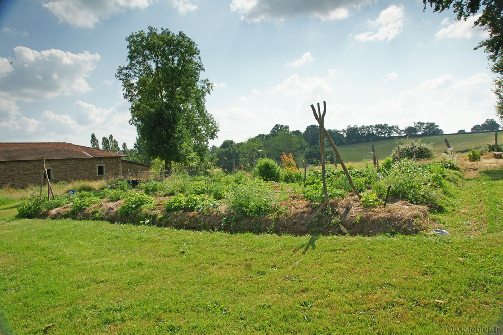 L’idée nous est venue en visitant l’exploitation de nos amis et voisins producteurs de semences pour Kokopelli, les sauveurs de vie. Bien entendu, l’échelle de la réalisation n’est pas la même chez nous, nos buttes ne faisant que 15m de long, mais l’idée reste la même.