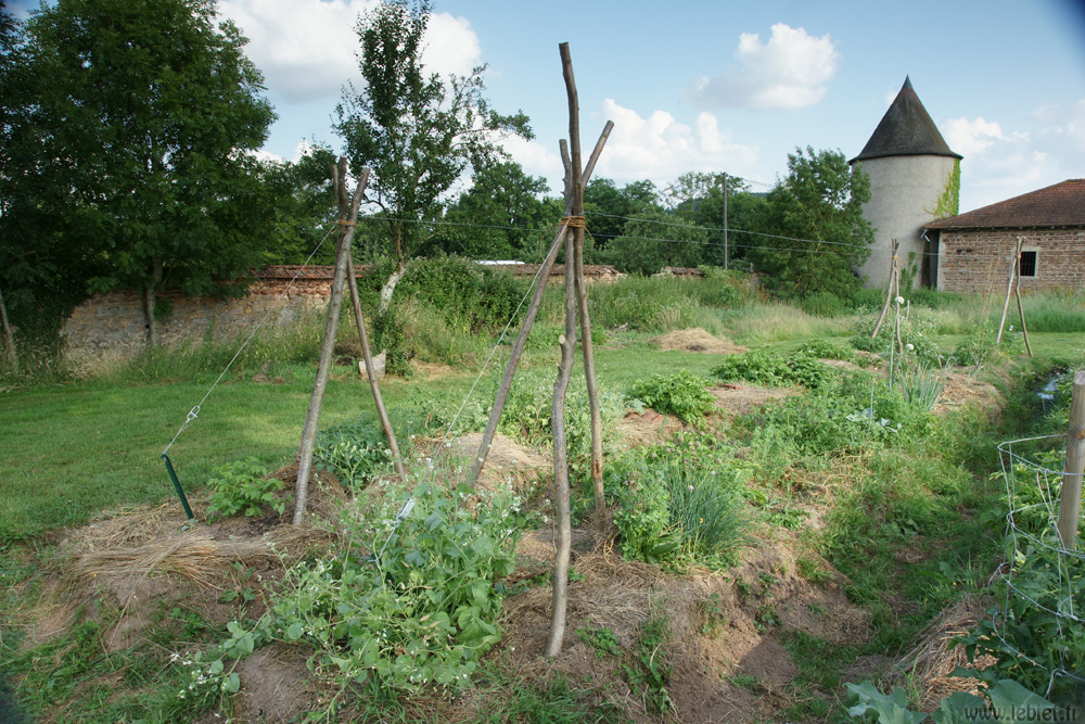 Je craindrai moins pour l’effondrement des trépieds une fois que nos buttes seront elles mêmes bordées par des planches ou du bambou, saule ou autre solution que nous aurons adopté, qui sera sûrement un mélange des trois ^_^