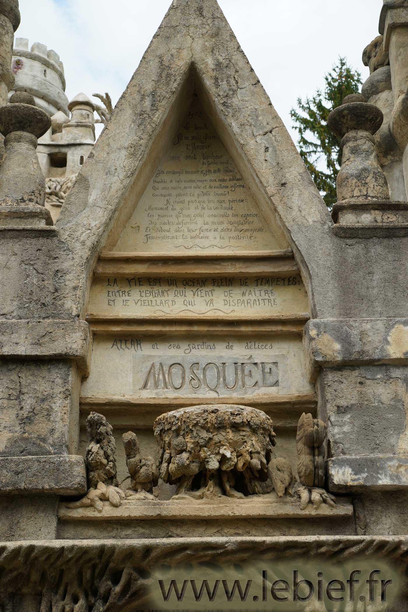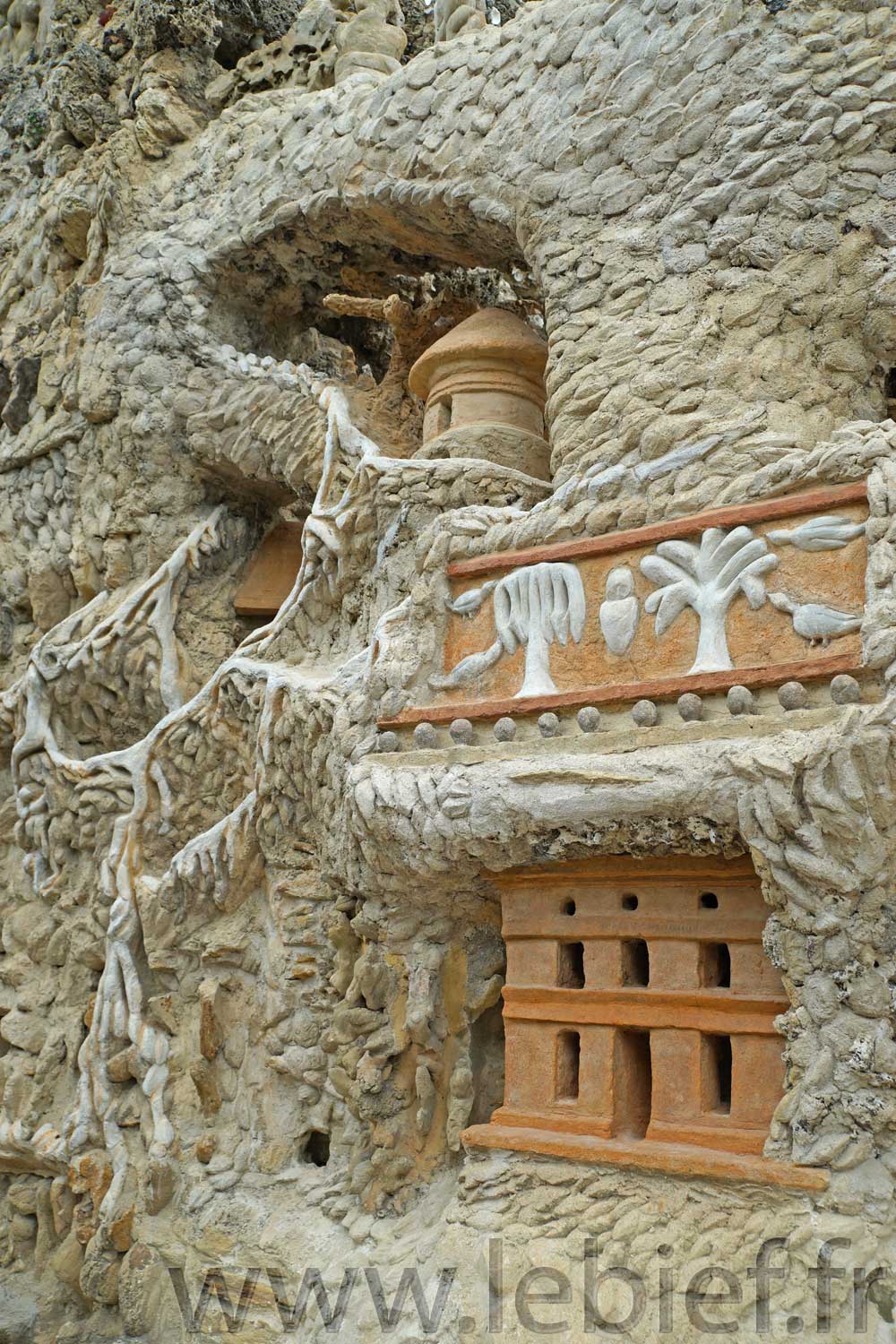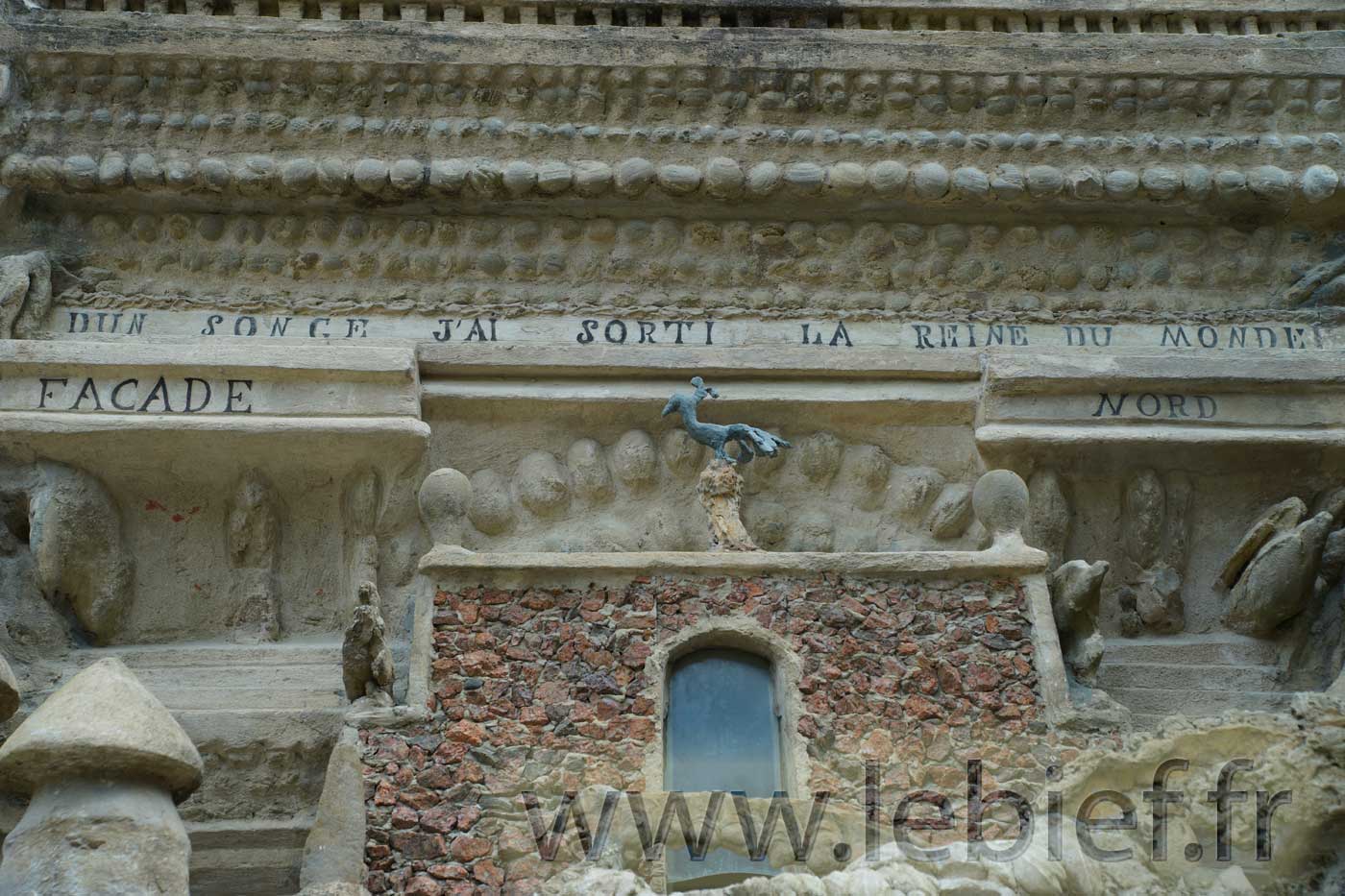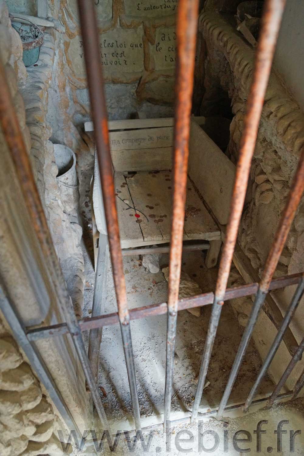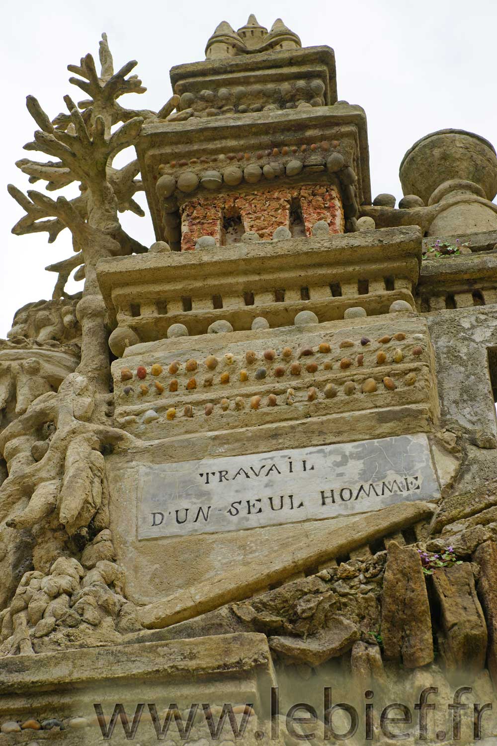 Prenez soin d’examiner ces photos, elles ne montrent pas tout, oh non, mais imaginez ce travail fourni par cet homme pendant toute sa vie, récoltant avec sa brouette les pierres et matériaux, suivant le chemin de sa tournée postale, suivant ses besoins, fruit de son imaginaire.
