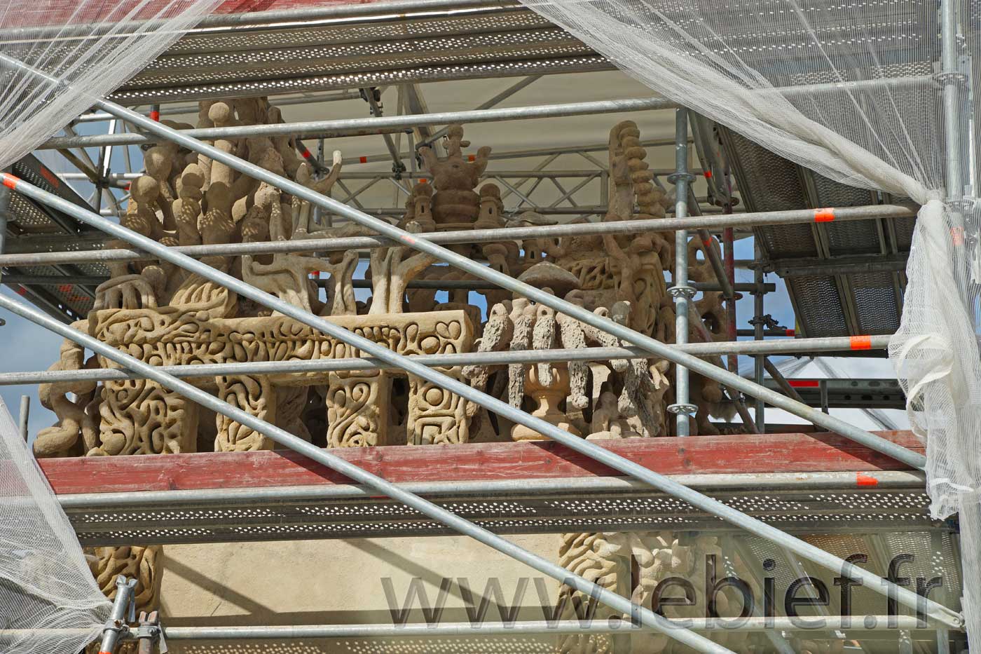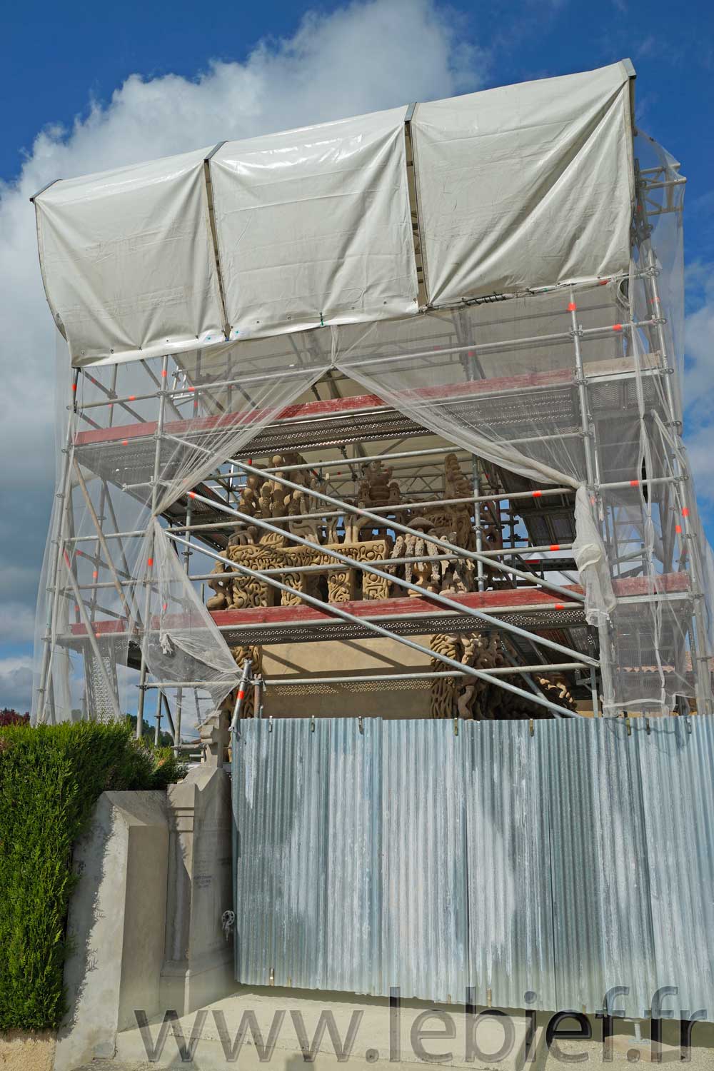D’ailleurs, notons aussi qu’après ce Palais Idéal, Ferdinand Cheval, dit le Facteur Cheval, a aussi bâti un mausolée familial au cimetière. Et si nous sommes aussi allés le voir, en mai 2016, il était en réfection, nous n’avons donc pas pu le visiter. Mais aujourd’hui, en 2021, les travaux doivent être terminés, sauf si c’est un autre manoeuvre qui, tel Ferdinand Cheval, en a fait l’oeuvre d’une vie ! 😉