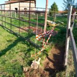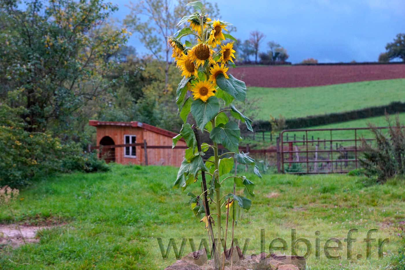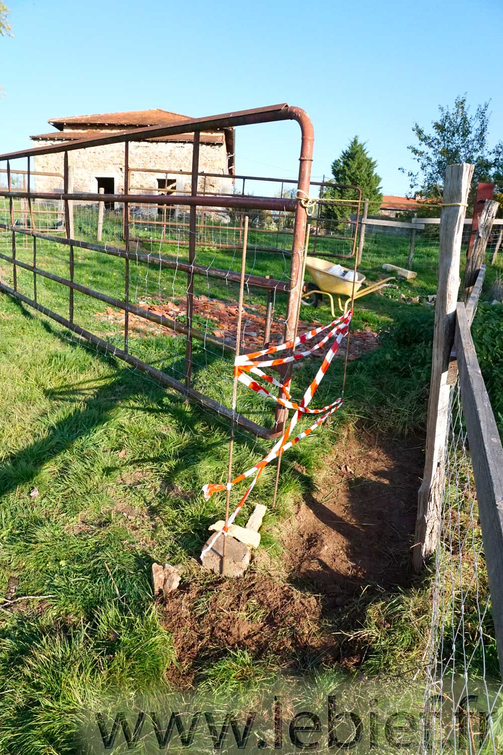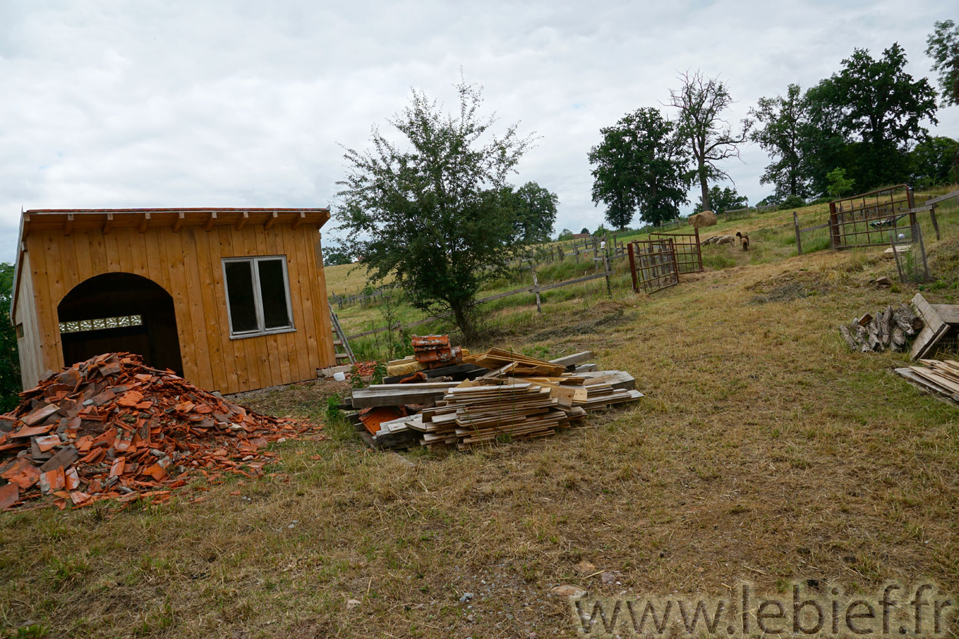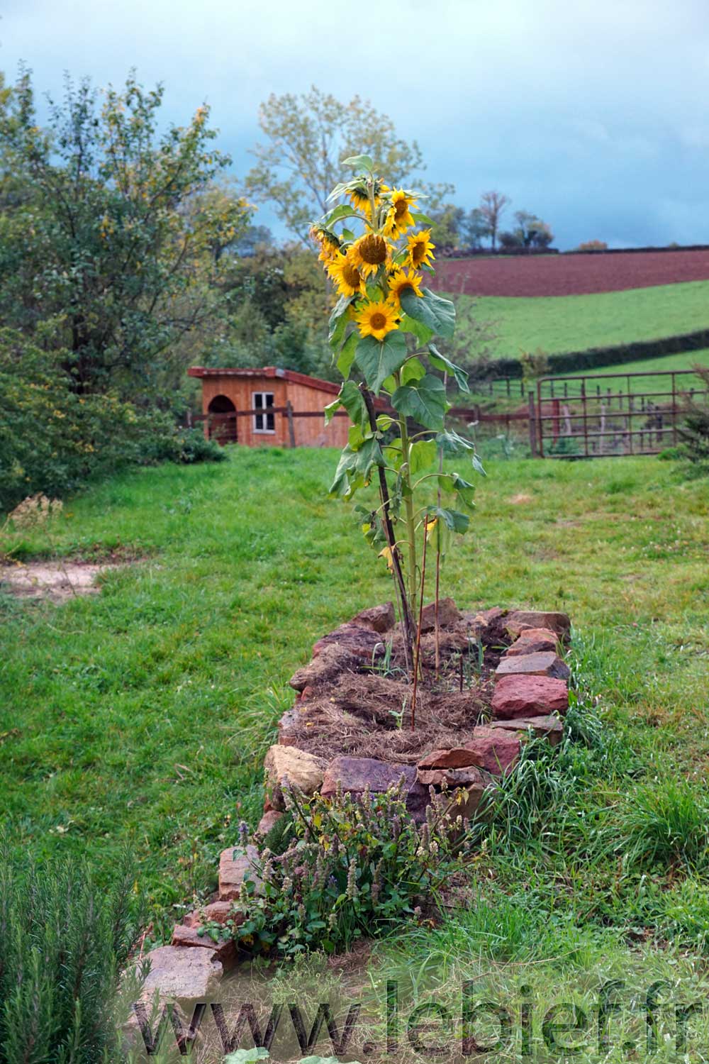 Octobre 2015…. Pose des tuiles de rive frontales sur l’abri pour les brebis Mérinos, un pédiluve pour les pattes de ces même brebis, un peu de potagers sur buttes, quelques paysages du Brionnais-Charolais, ou Charolais-Brionnais selon les officiels et les clochers, et zou, direction le gros projet suivant, la création et plantation de la haie mellifère, enfin !
