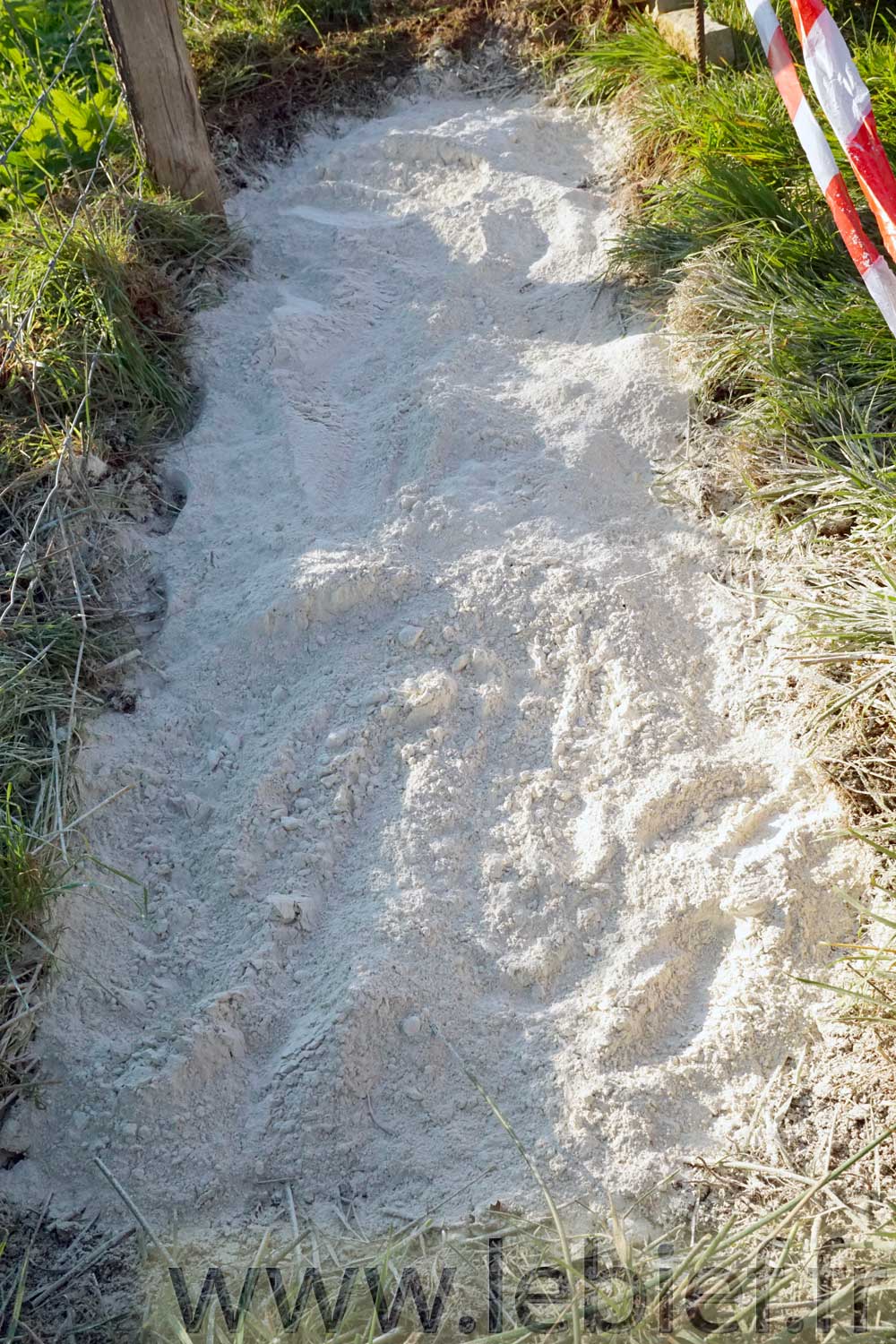 Avec le temps, la pluie, les passages répétés, la poudre se transforme en pâte, puis en gros morceaux, le tout part ou se solidifie sur place. La chaux ne pollue pas les sols, et la nature reprend vite le dessus.2