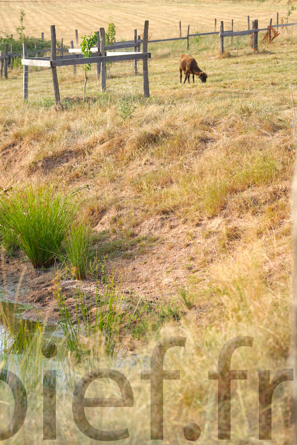 Ainsi, en cette belle journée de juin 2015, après quelques jours d’acclimatation dans la zone comprenant leur abri et l’accès à l’étang, les jeunes brebis Mérinos d’Arles et du Portugal sont parties à la découverte de la première pâture !