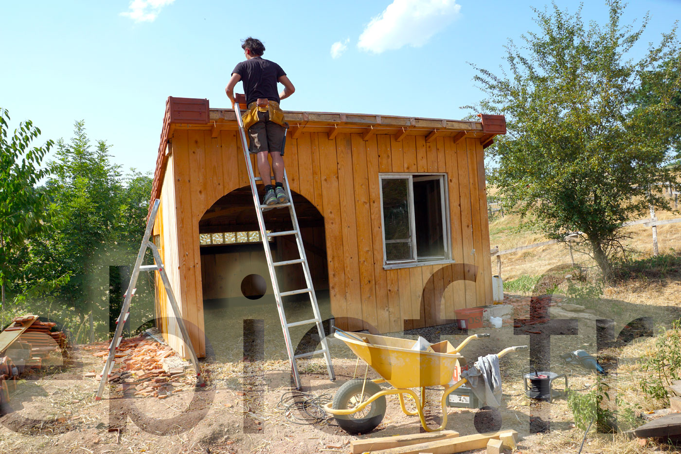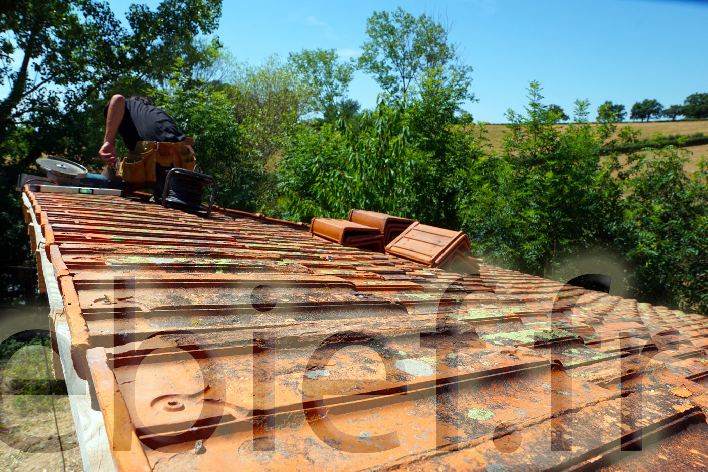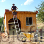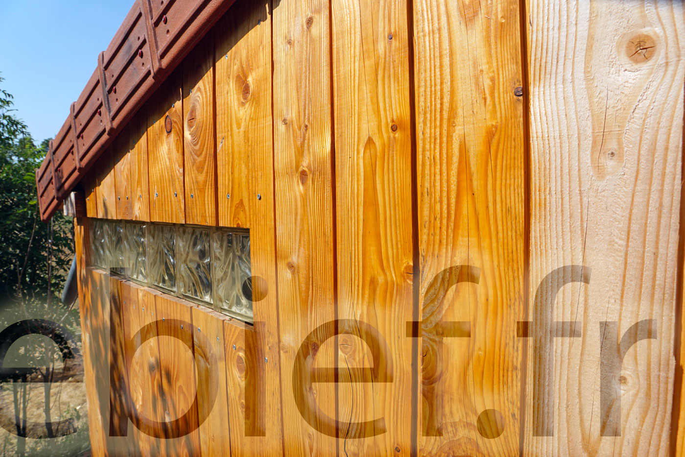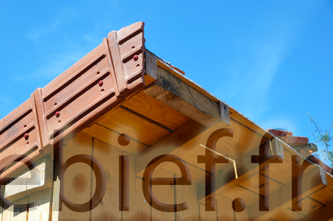 C’est aussi le bon moment pour finaliser ce bel abri à brebis, en lui installant ses tuiles de rives, et lui passer une belle couche d’huile de lin. Diluée, pour cette première fois sur ce bois brut, avec de l’essence de térébenthine pure gemme 1, ben oui, c’est qu’on les aime nos petites brebis !