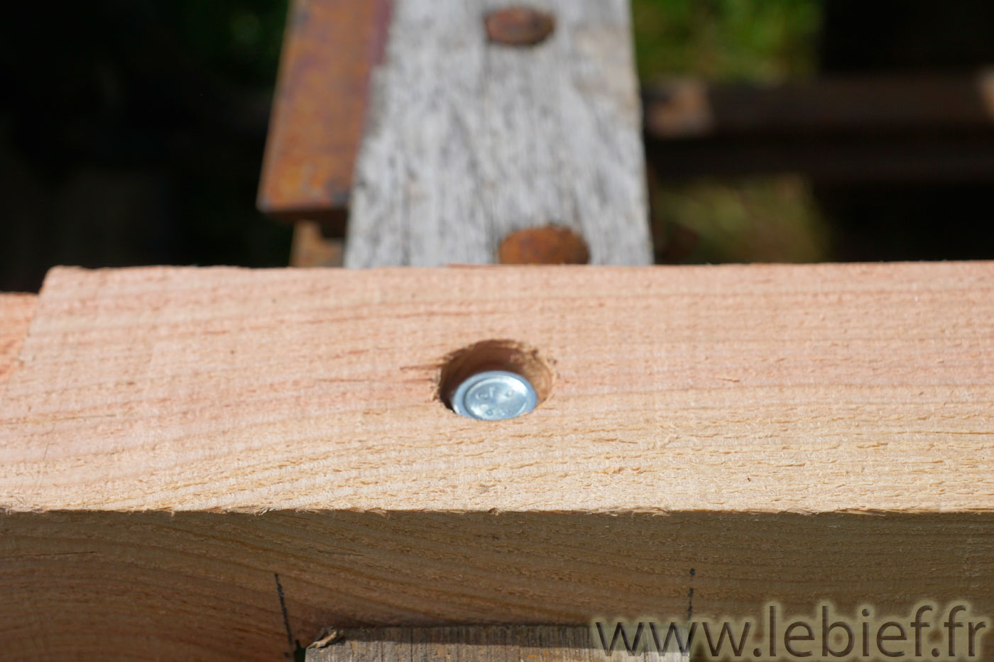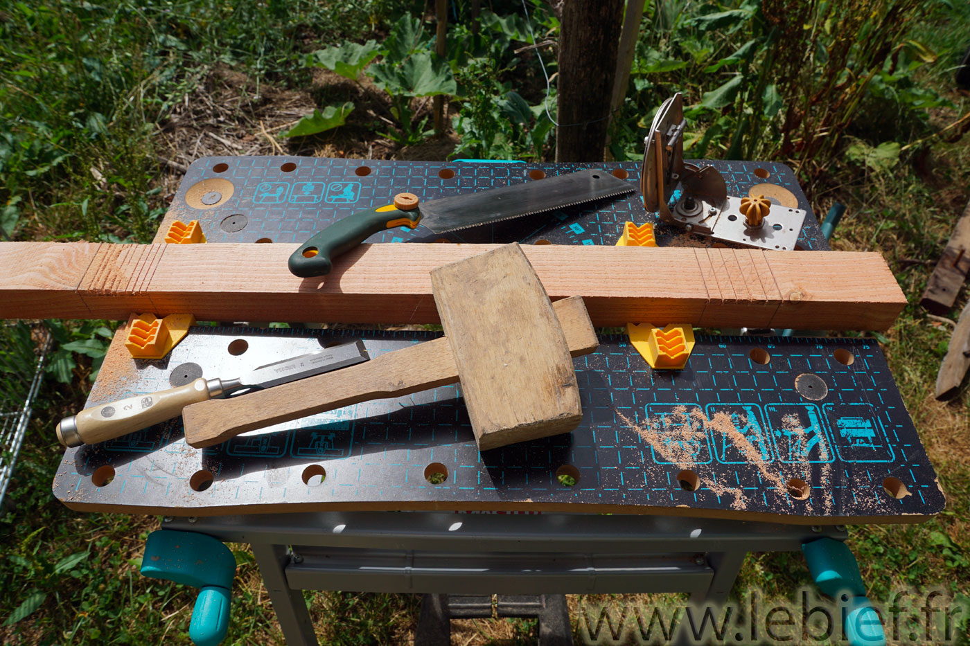 Une réparation s’avérait donc nécessaire. Et ça tombait bien, j’avais un reste de bois qui allait bien faire l’affaire, ainsi que tous les outils disponibles. N’a fallu ensuite qu’un peu de temps, ce qui est toujours plus difficile à trouver que la petite liste précédente ! 😉