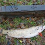 On le voit ici juste à côté d’un des rares cadavres (et hop! encore plein de lecteurs bizarres grâce à ce mot clef ! euh, en fait, je ne suis pas sûr que ce soit une bonne chose… ;o) ) de cette vidange (en dehors des petits poissons qui sont beaucoup plus sensibles, j’ai dénombré deux-trois grosses carpes, coincées ou trop blessées, et ce brochet).