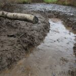 Cuissarde de pêche obligatoire ! A certains endroits, on s’enfonçait vraiment, le niveau de l’eau était parfois un peu haut, mais surtout, il y a beaucoup de boue, sur les outils aussi, on s’en met un peu partout sur les cuisses en y appuyant la pelle pour prendre appui.