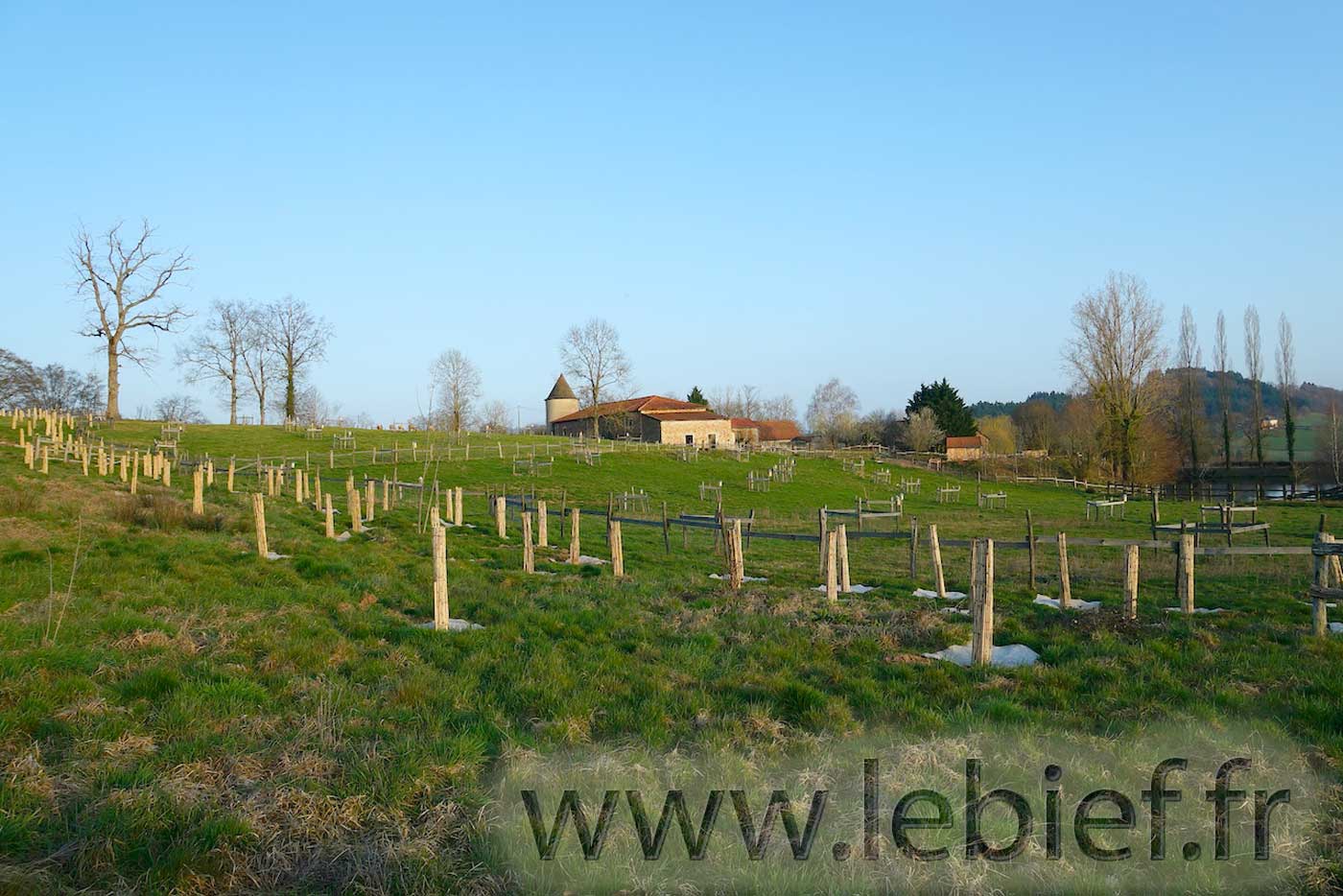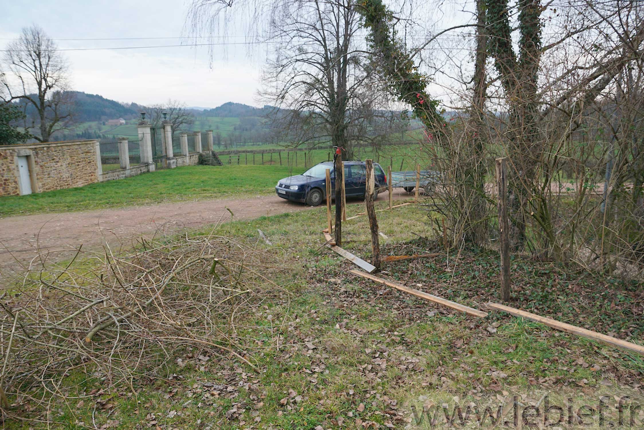 Octobre 2015…. Pose des tuiles de rive frontales sur l’abri pour les brebis Mérinos, un pédiluve pour les pattes de ces même brebis, un peu de potagers sur buttes, quelques paysages du Brionnais-Charolais, ou Charolais-Brionnais selon les officiels et les clochers, et zou, direction le gros projet suivant, la création et plantation de la haie mellifère, enfin !