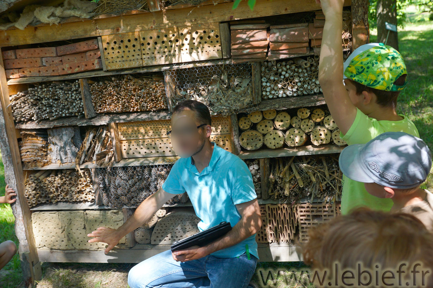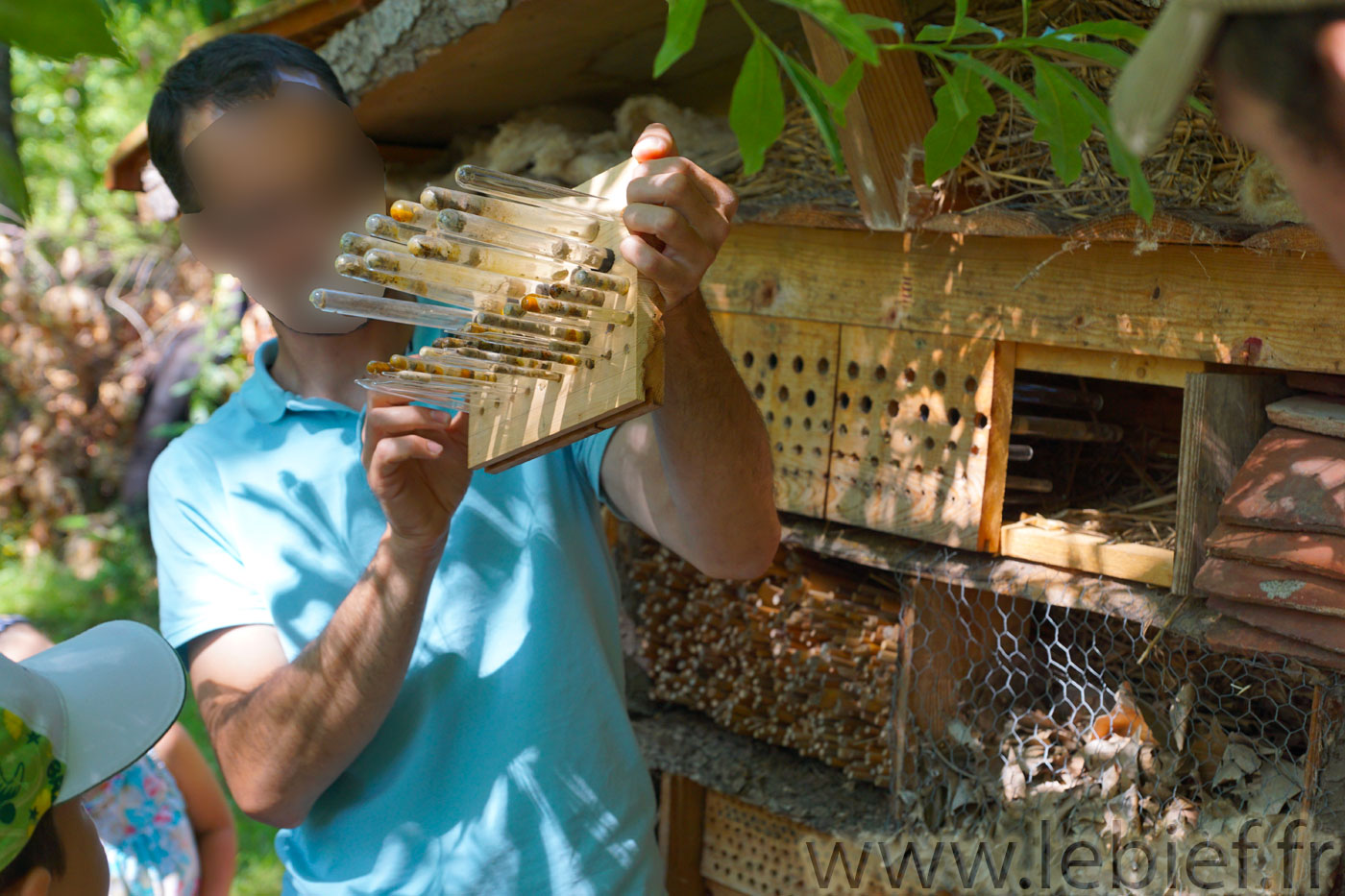 Une présentation sympathique des lieux, une visite guidée avec passion, des exemples de réalisations faciles à faire chez soi pour accueillir une diversité d’auxiliaires dans nos villes et jardins et enfin, comme c’était aussi la saison, les enfants ont pu chacun participer à l’extraction de miel de rayons prélevés dans des ruches.