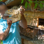 Ils ont pu aussi ramener un petit pot de miel qui avait été extrait la veille par un autre groupe de visiteur. Celui extrait par le nôtre ira aux visiteurs du lendemain.
