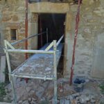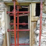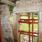 J’ai, avec un petit coup de main donc, étayé plus sérieusement la toiture et la porte existante, comme sur la photo ci-dessus, afin que tout ceci se stabilise un peu, que je puisse tout de même travailler un peu plus en sécurité, voire travailler tout court en fait. :p